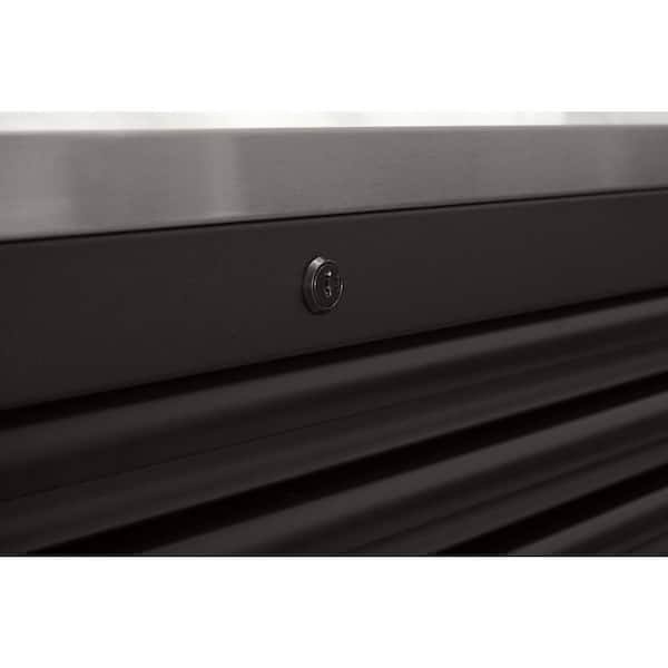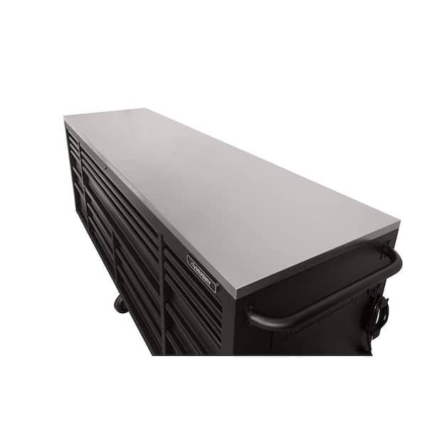 Husky Tool Storage 84 in. W Heavy Duty Matte Black Mobile Workbench Tool Chest with Stainless Steel Work Top, Matte Black with Black Trim