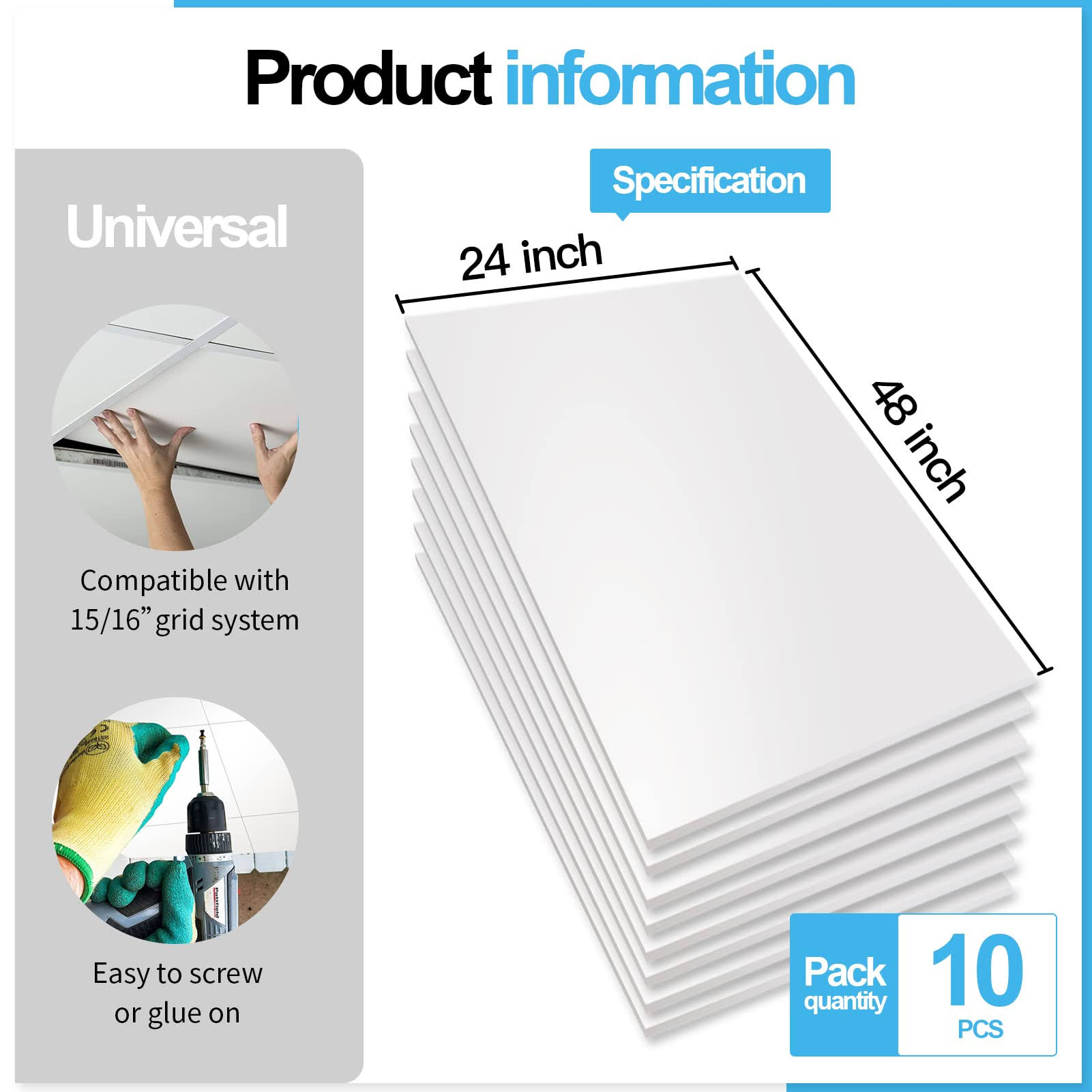 Art3d 24-Pack Smooth Drop Ceiling Tile 2ft x 2ft- Fire-Rated, Waterproof, Reusable- Premium PVC, No Sag and Breakage- Cover 96 Sq. ft, White