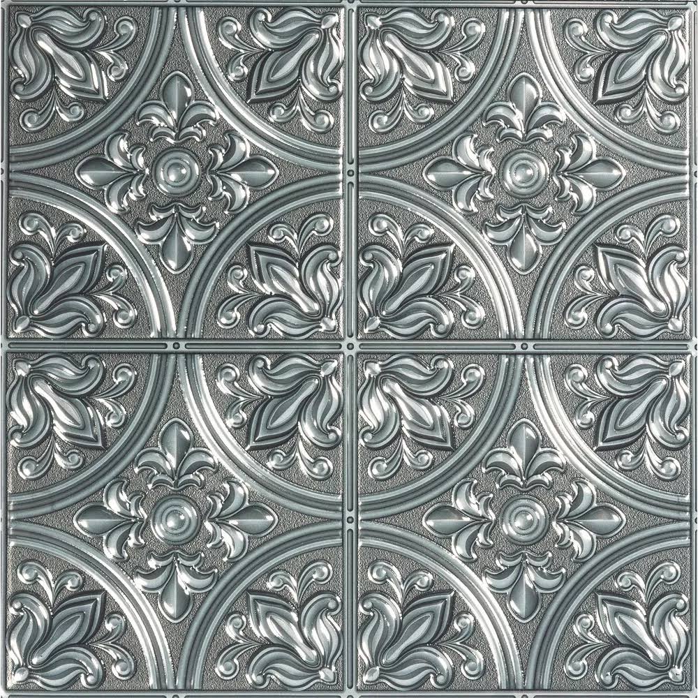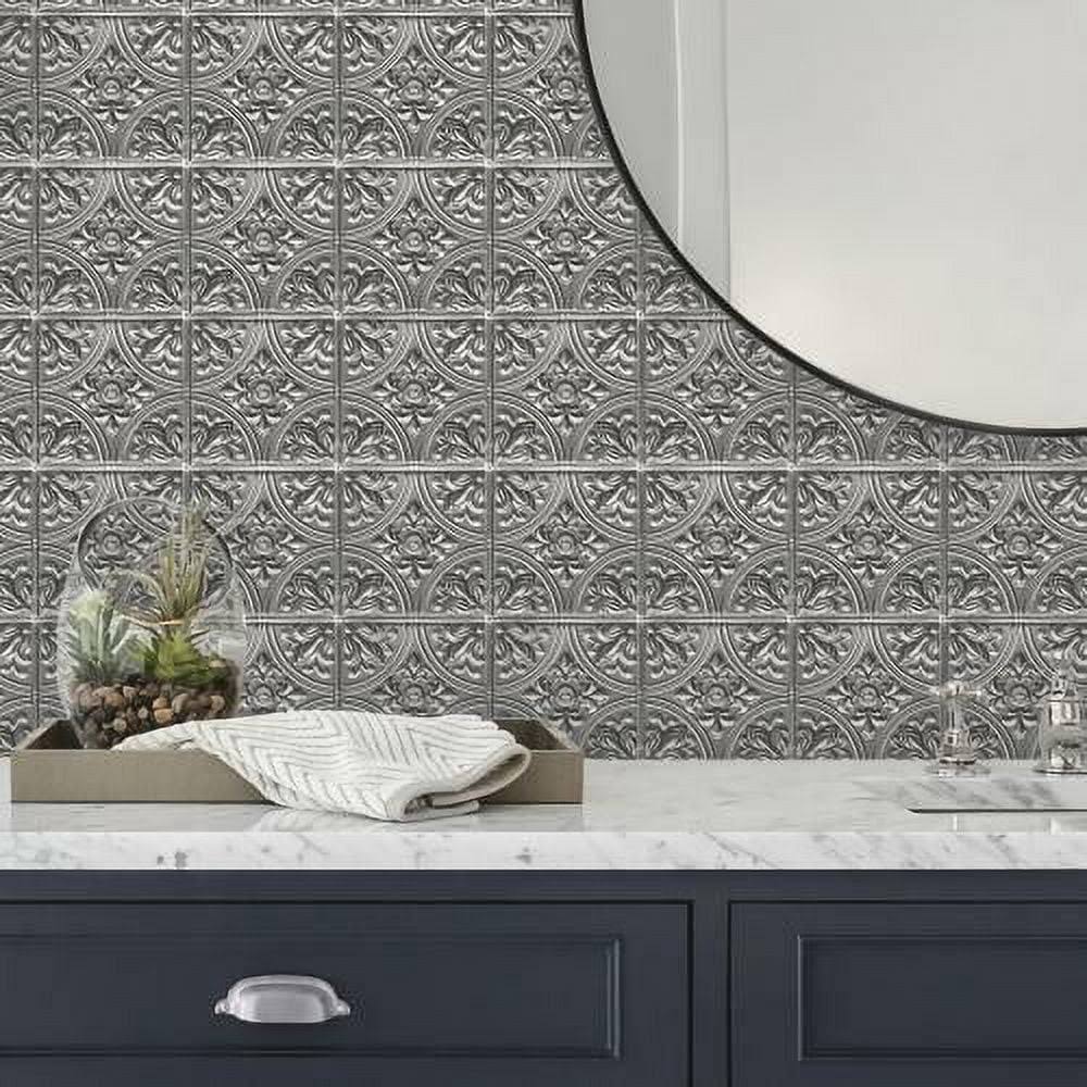 RoomMates Peel and Stick Tile Backsplash Wallpaper Silver Tin