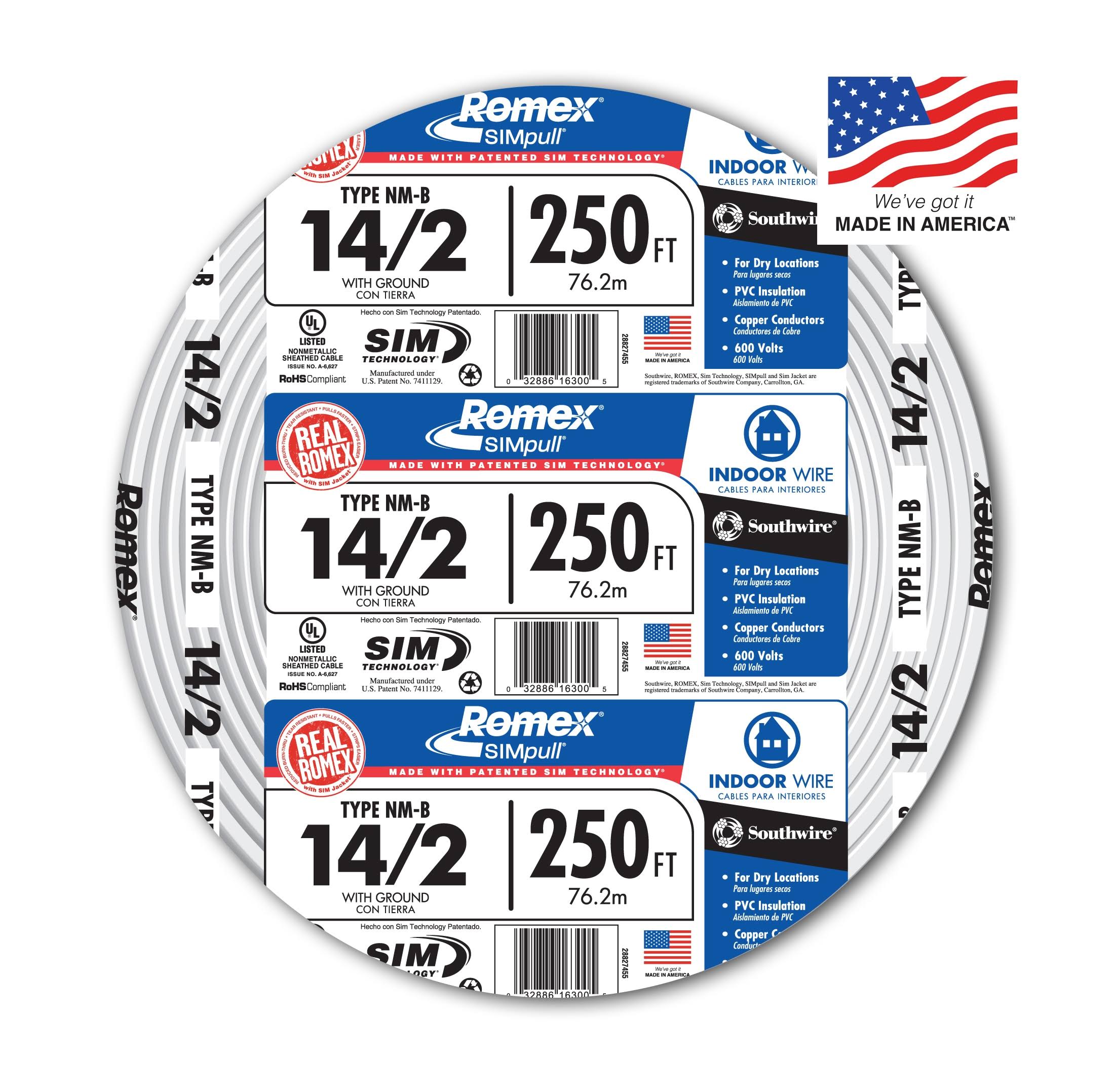 Southwire Romex SIMpull 14/2 Solid Non-Metallic Wire- 250'- Each