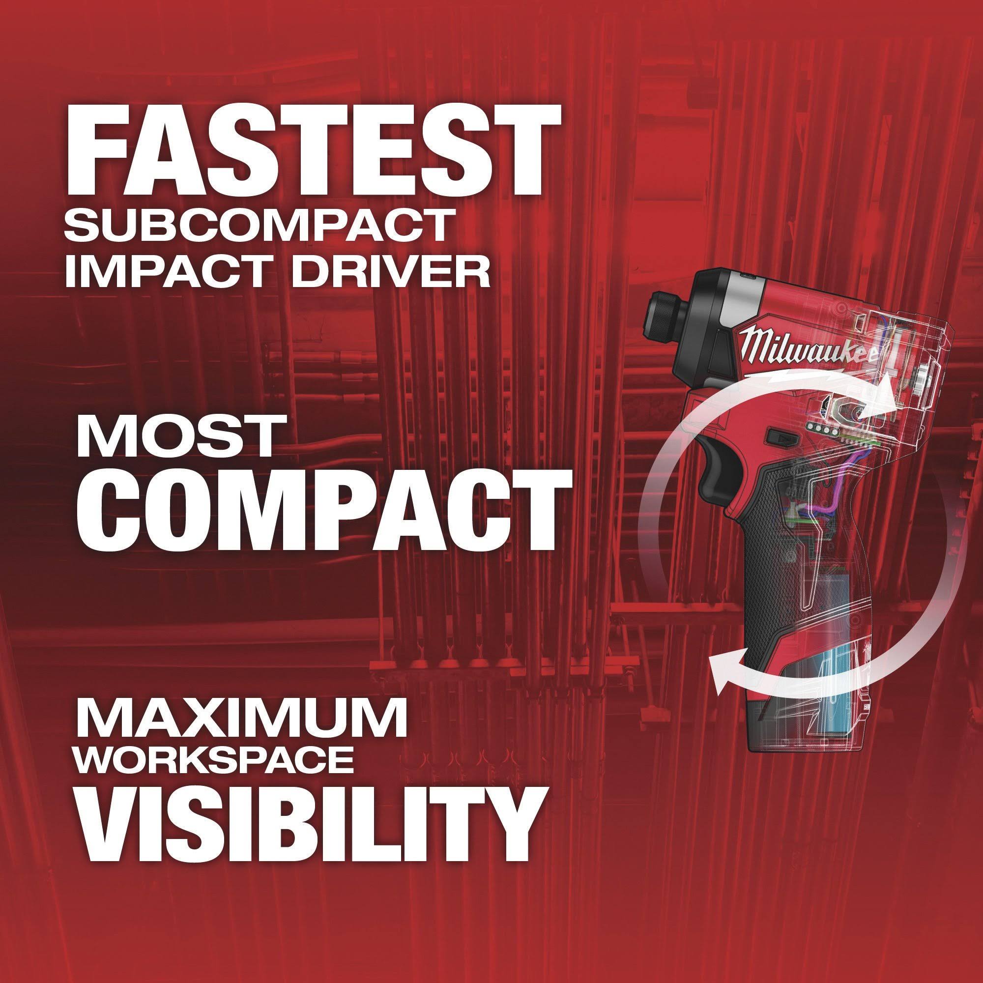 Milwaukee 3453-21 M12 Fuel 12-Volt Lithium-Ion Brushless Cordless 1/4 in. Hex Impact Driver Compact Kit W 2.0Ah Battery and Bag