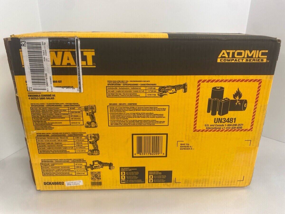 DeWalt Atomic 20V Max Brushless Cordless 4-Tool Combo Kit DCK486D2