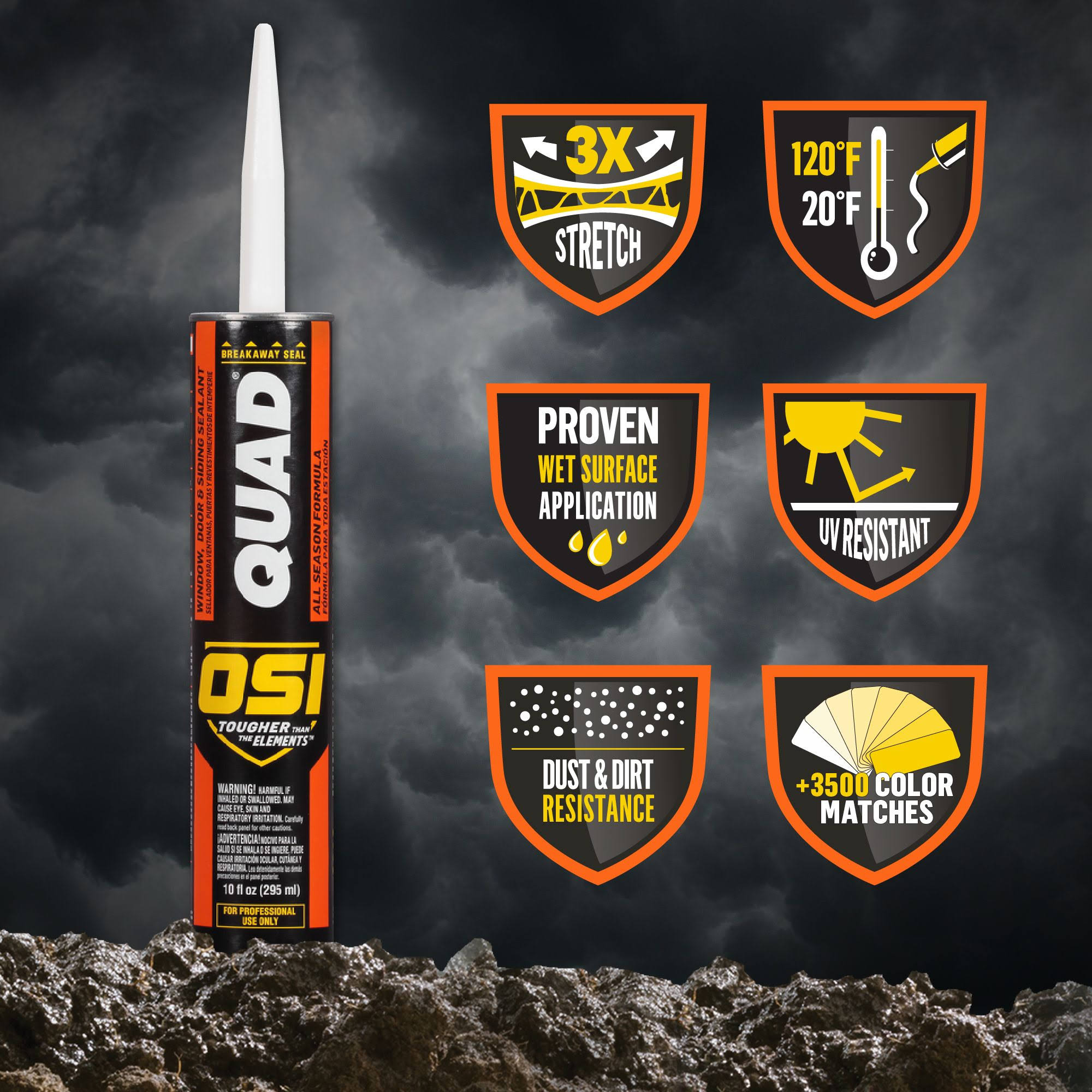 Henkel 827837 OSI Quad 10.2-Ounce Advanced Formula Sealant for Windows, Doors and Siding, Clear