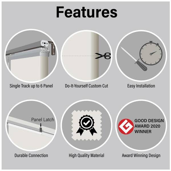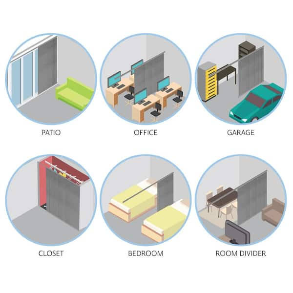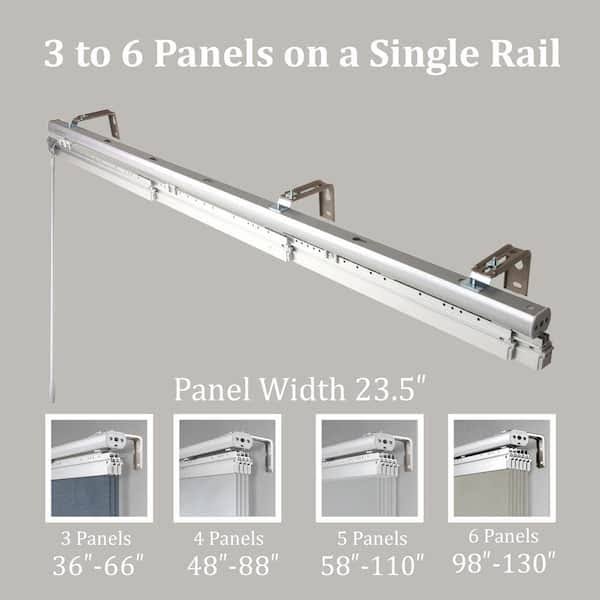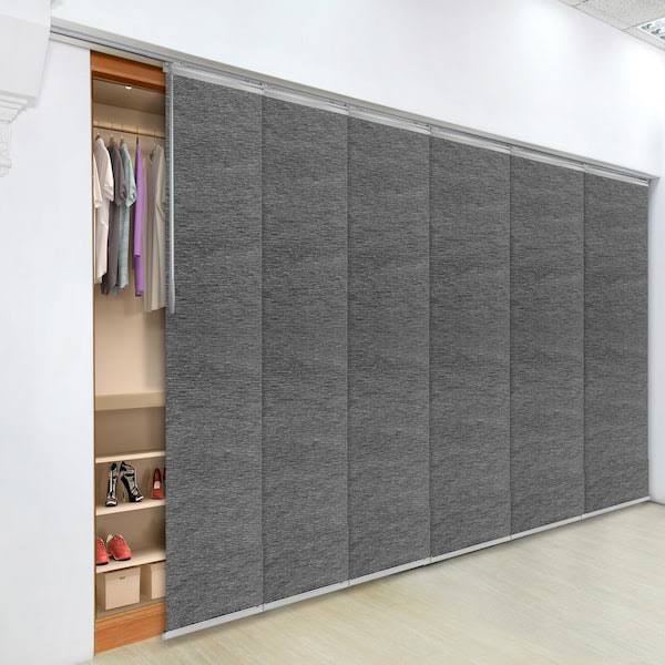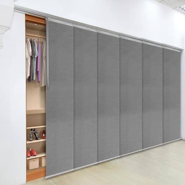 EMOH Cinder Gray Adjustable Sliding Single Rail Track with 23.5 in. Slates, Extendable 98 in.- 130 in. W x 94 in. L in Gray