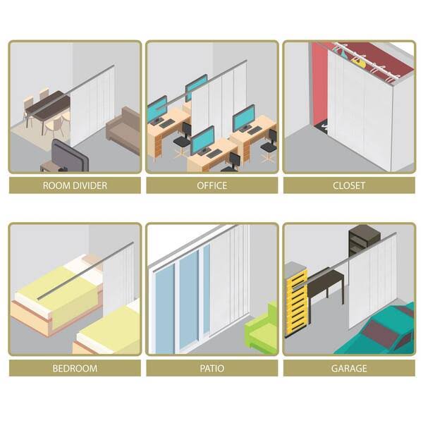 EMOH Adjustable Sliding Single Rail Track in Crystal White with 15.75 in. Slates, Extendable 28 in. to 43 in. W x 94 in. L