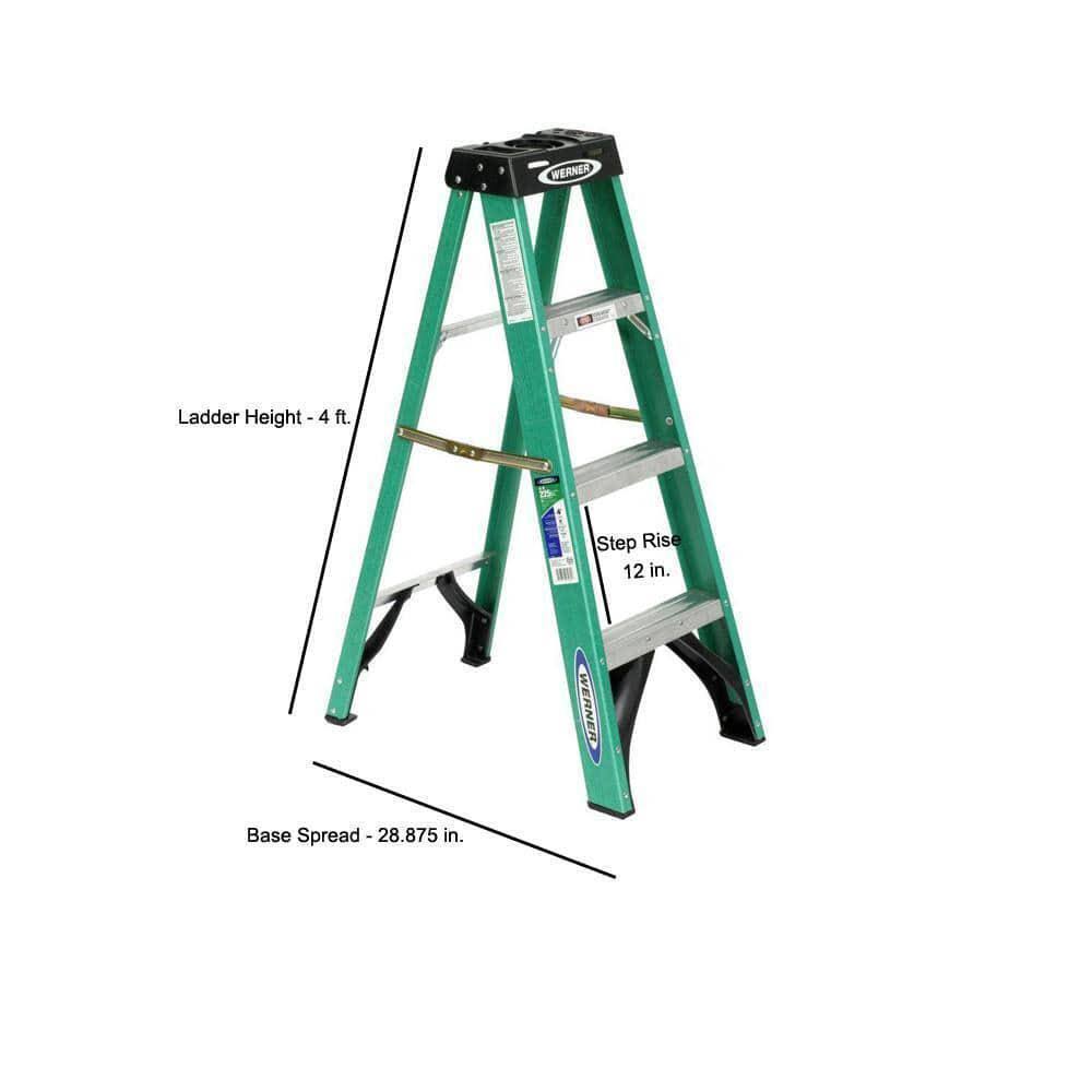 Werner 4 ft. Fiberglass Step Ladder with 225 lb. Load Capacity Type II Duty Rating