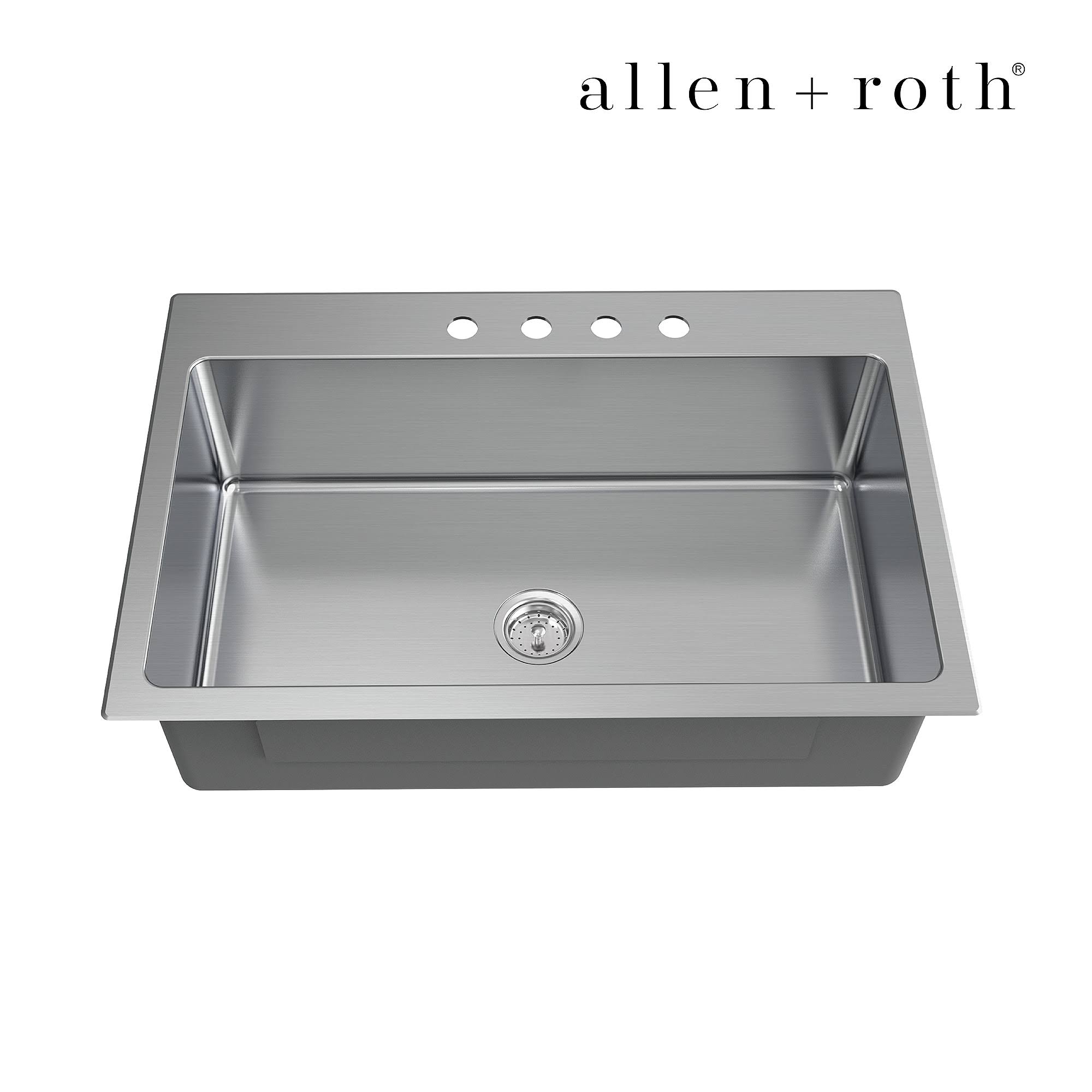 Allen + Roth The Theo Dual-Mount 33-in x 22-in Stainless Steel Single Bowl 4-Hole Kitchen Sink | VDR3322LA1-S