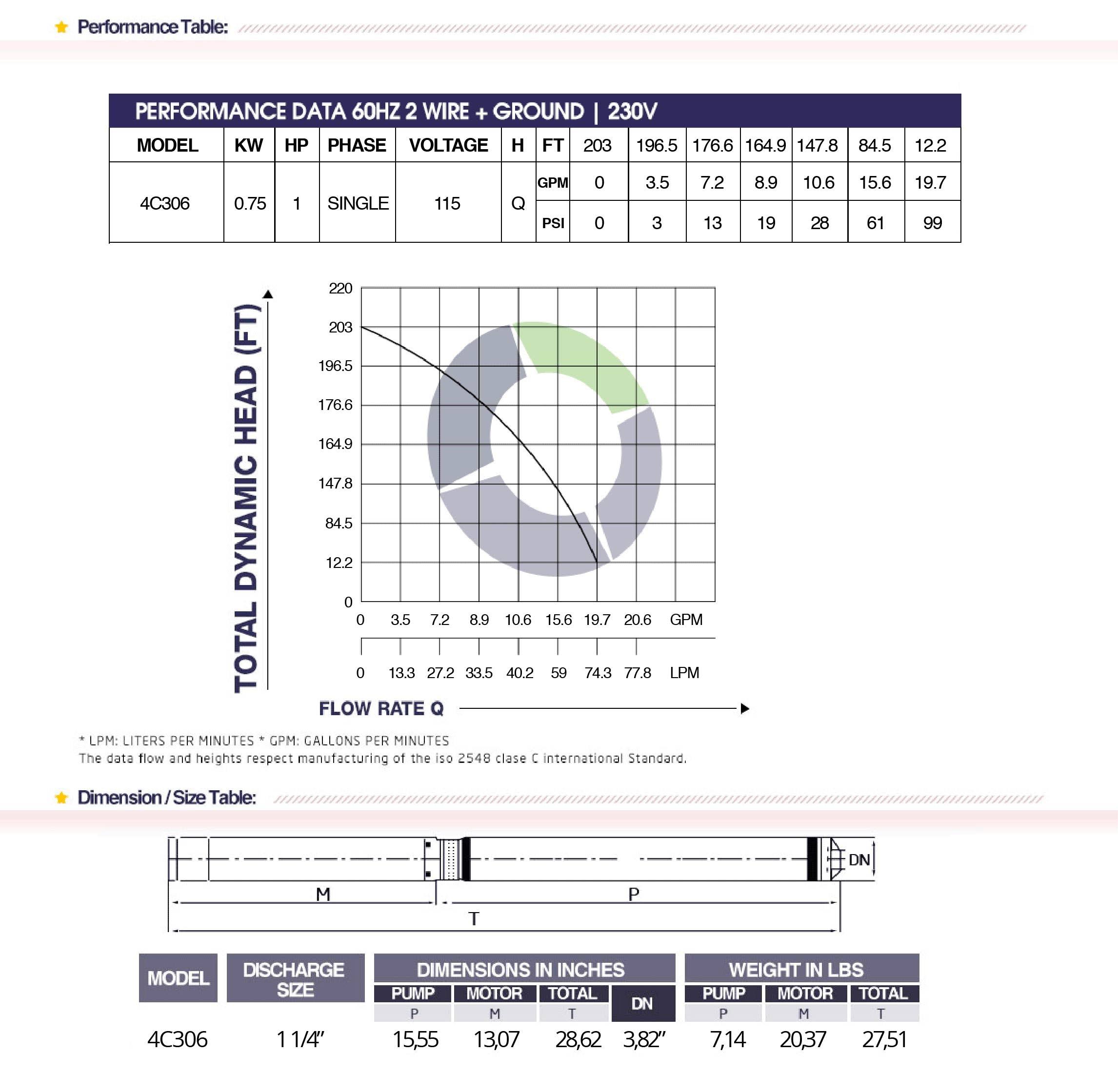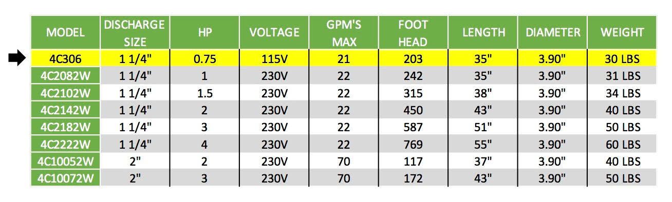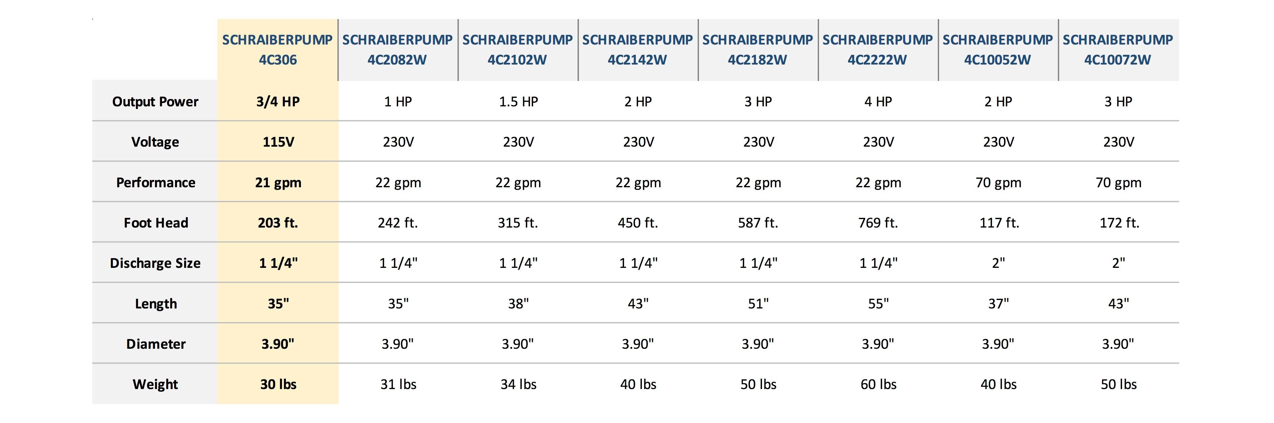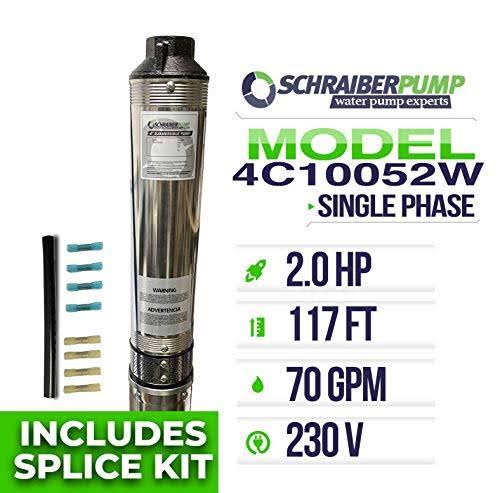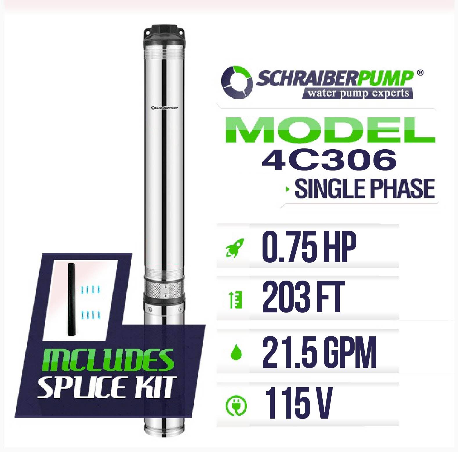 Schraiberpump 4C306-4" Deep Well Submersible Pump 3/4HP 115V 203FT 80PSI Max 21GPM 2 Wire