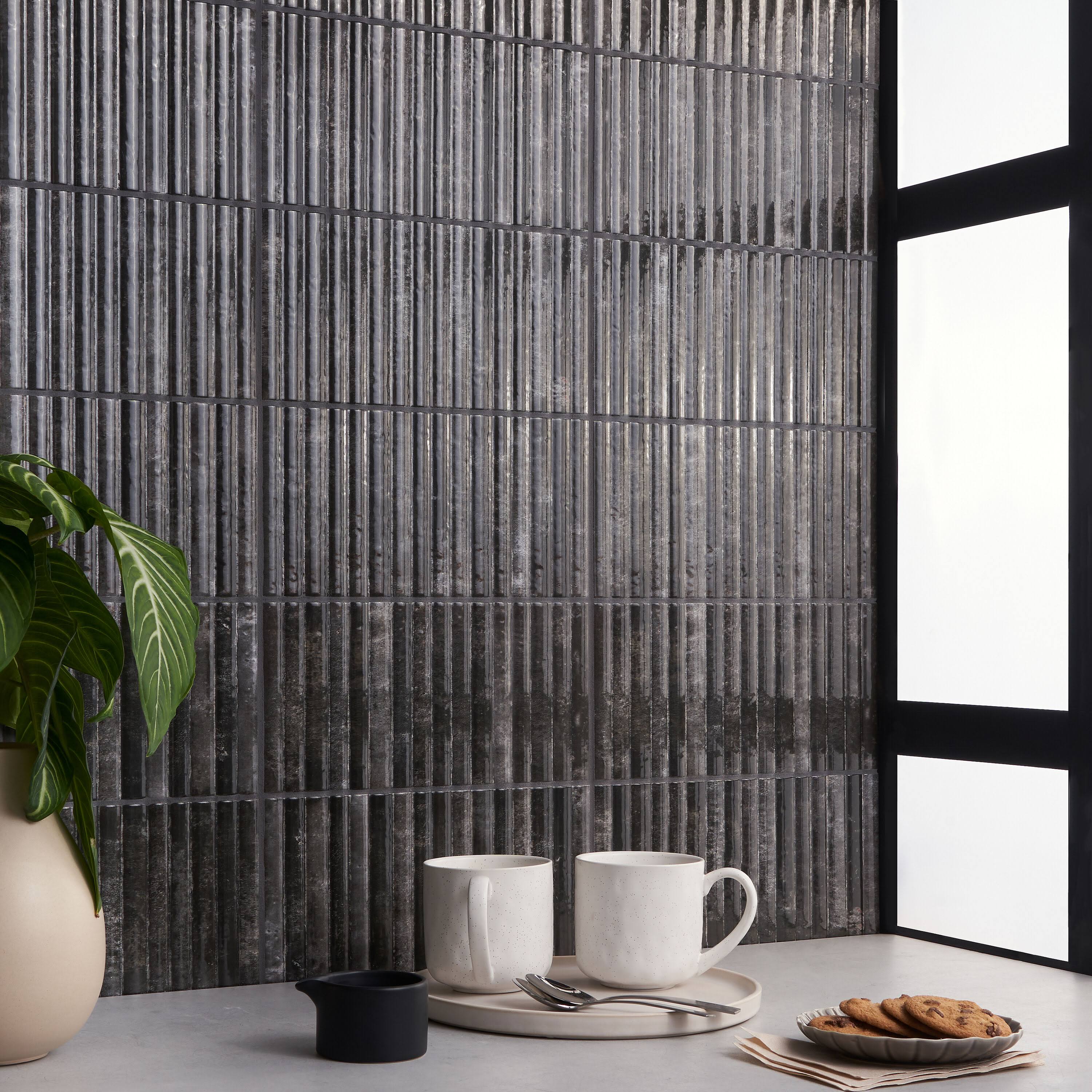 Ivy Hill Tile Mawr Black 5.9 in. x 11.81 in. Polished Fluted Ceramic Wall Tile (9.68 Sq. ft./Case)