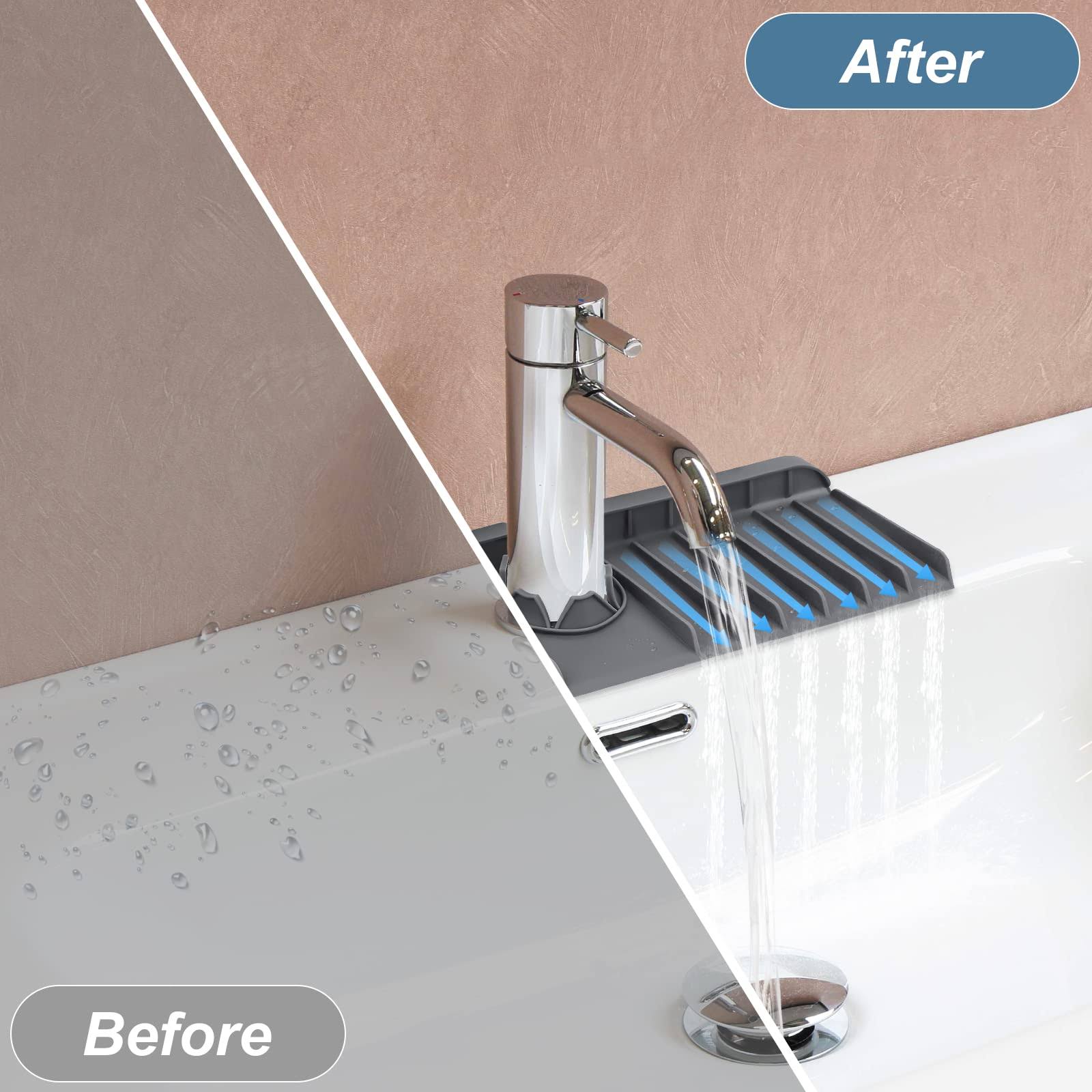AEOOZGR Kitchen Sink Splash Guard Silicone Sink Draining Pad Behind Faucet Kitchen Sink Accessories Faucet Bathroom Absorbent Water Catcher Mat (Grey)