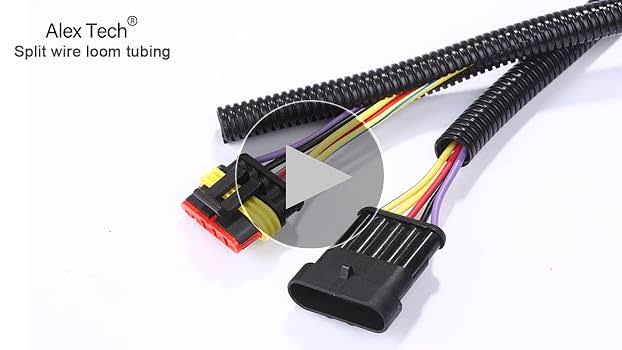 Alex Tech 50ft- 12 inch Split Wire Loom Tubing Wire Conduit- Black