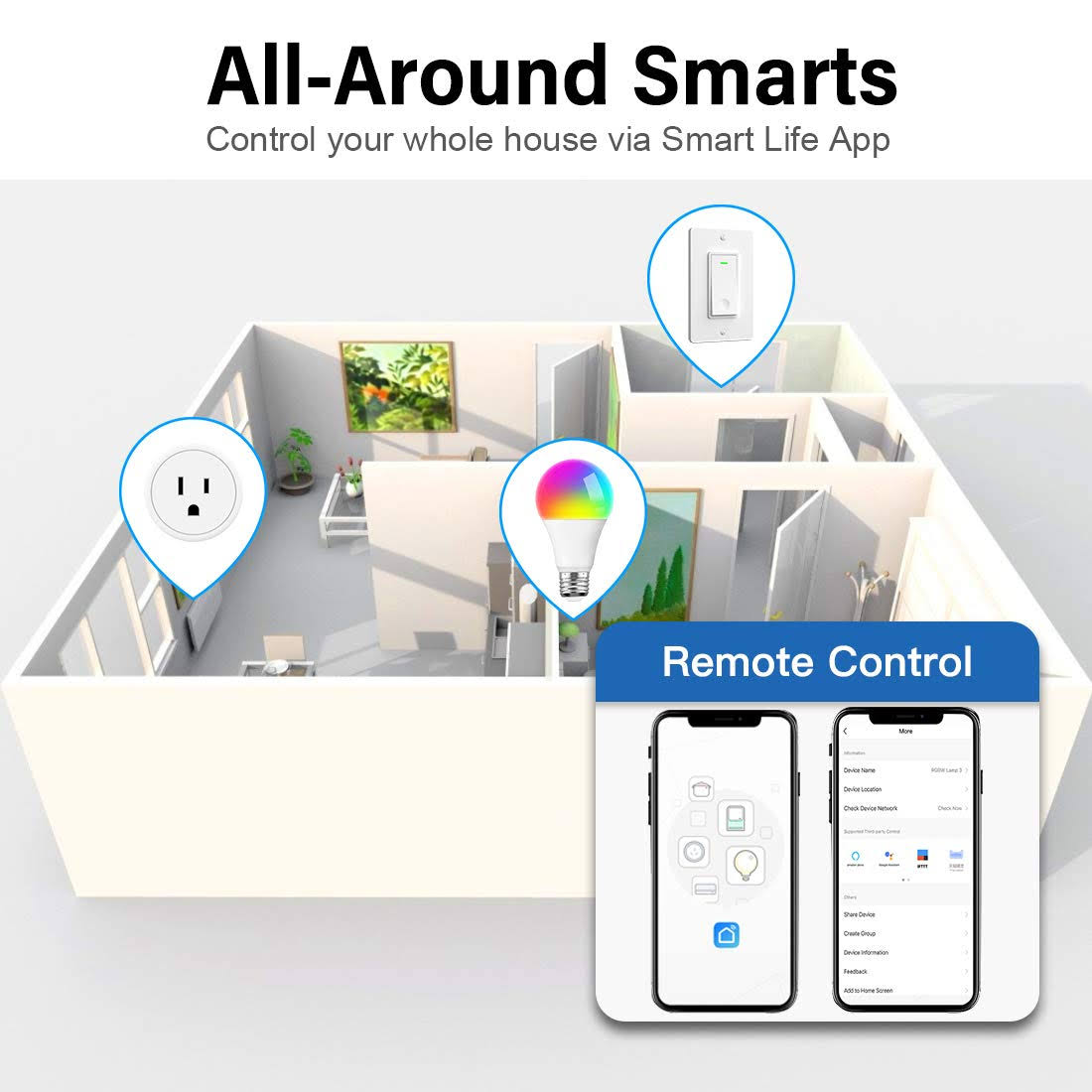 Aoycocr Bluetooth WiFi Smart Plug- Smart Outlets Work with Alexa Google Home Assistant Remote Control Plugs with Timer Function ETL/FCC/Rohs