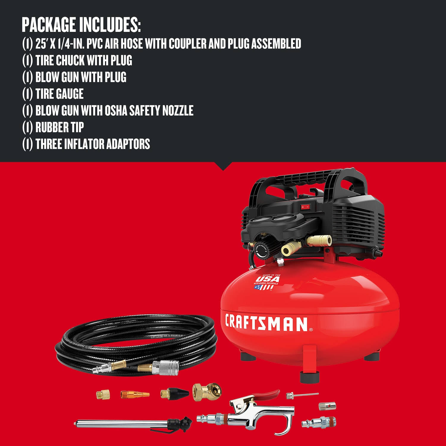 Craftsman Air Compressor, 6 Gallon, Pancake, Oil-Free with 13 Piece Accessory Kit