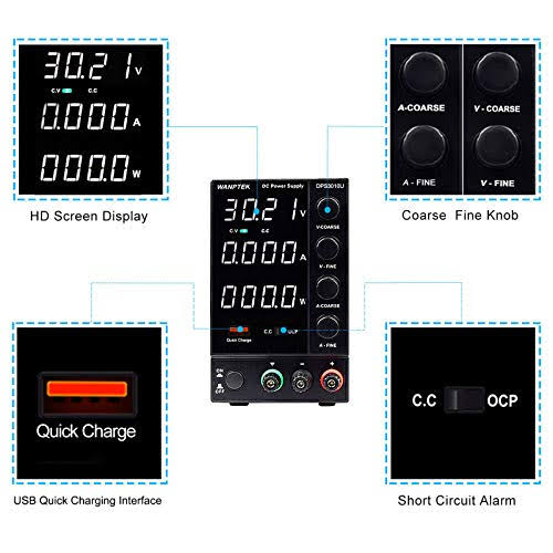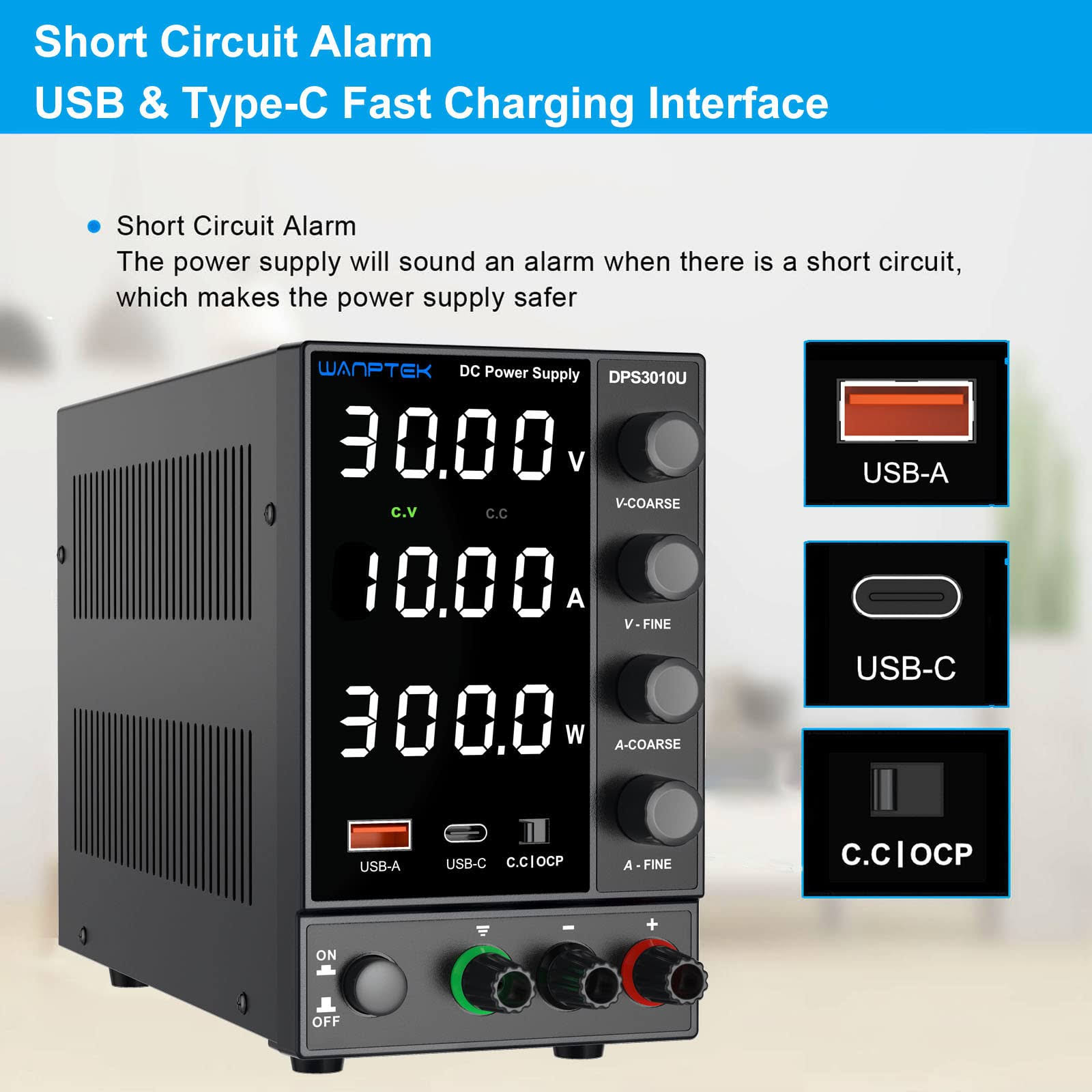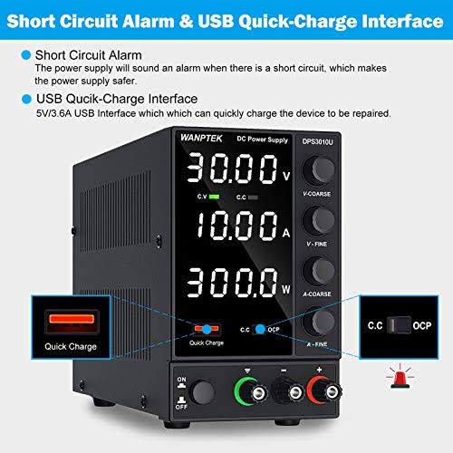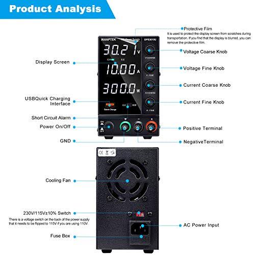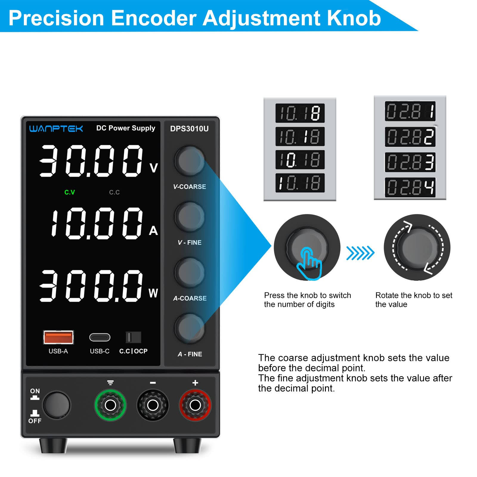 Wanptek DC Power Supply Variable, Adjustable Switching Regulated Power Supply (30 V 0-10a) with Encoder Coarse & Fine Adjustments Knob, Bench Power