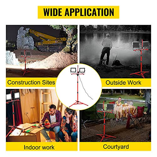 VEVOR Work Light Waterproofed 10000 Lumen Dual-Head LED Jobsite Lighting with Adjustable and Foldable Tripod Stand