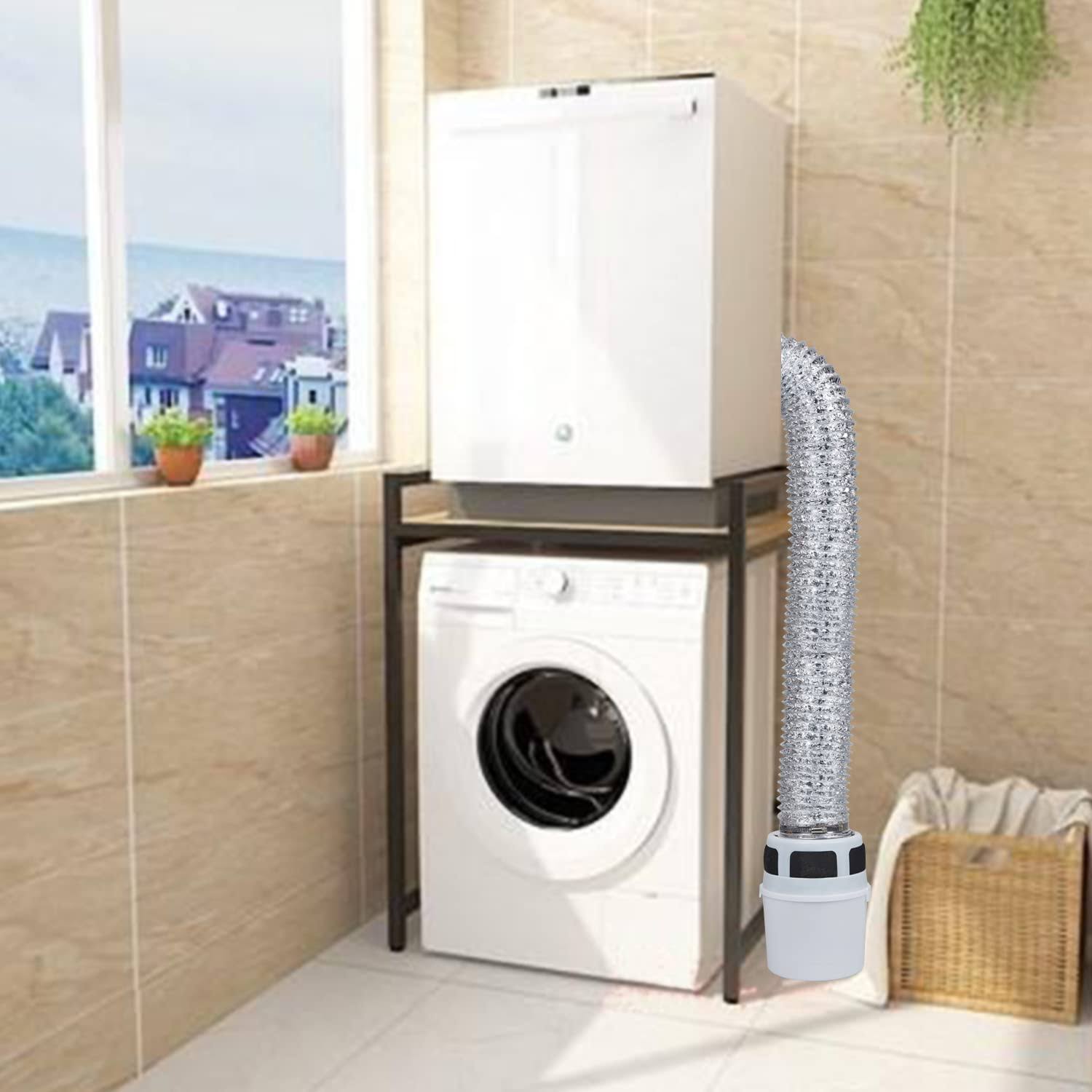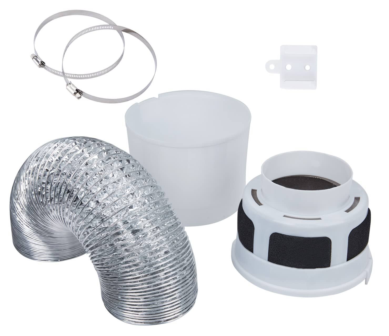 VIWINVELA 3 in 1 Indoor Dryer Vent Kit Filter Bucket for Electric Dryer with 4-Inch by 5-Feet ProFlex Duct (Silver)