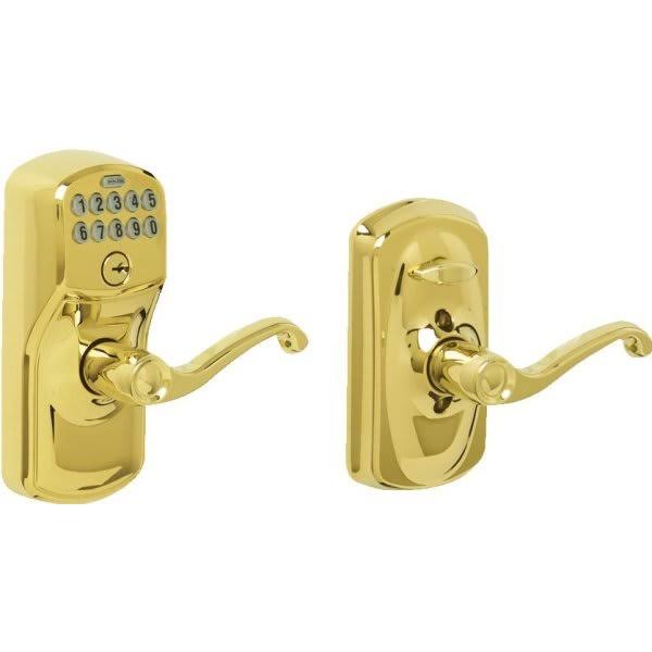 Schlage Plymouth Keypad Entry W/Flex-Lock with Flair Lever Bright Brass