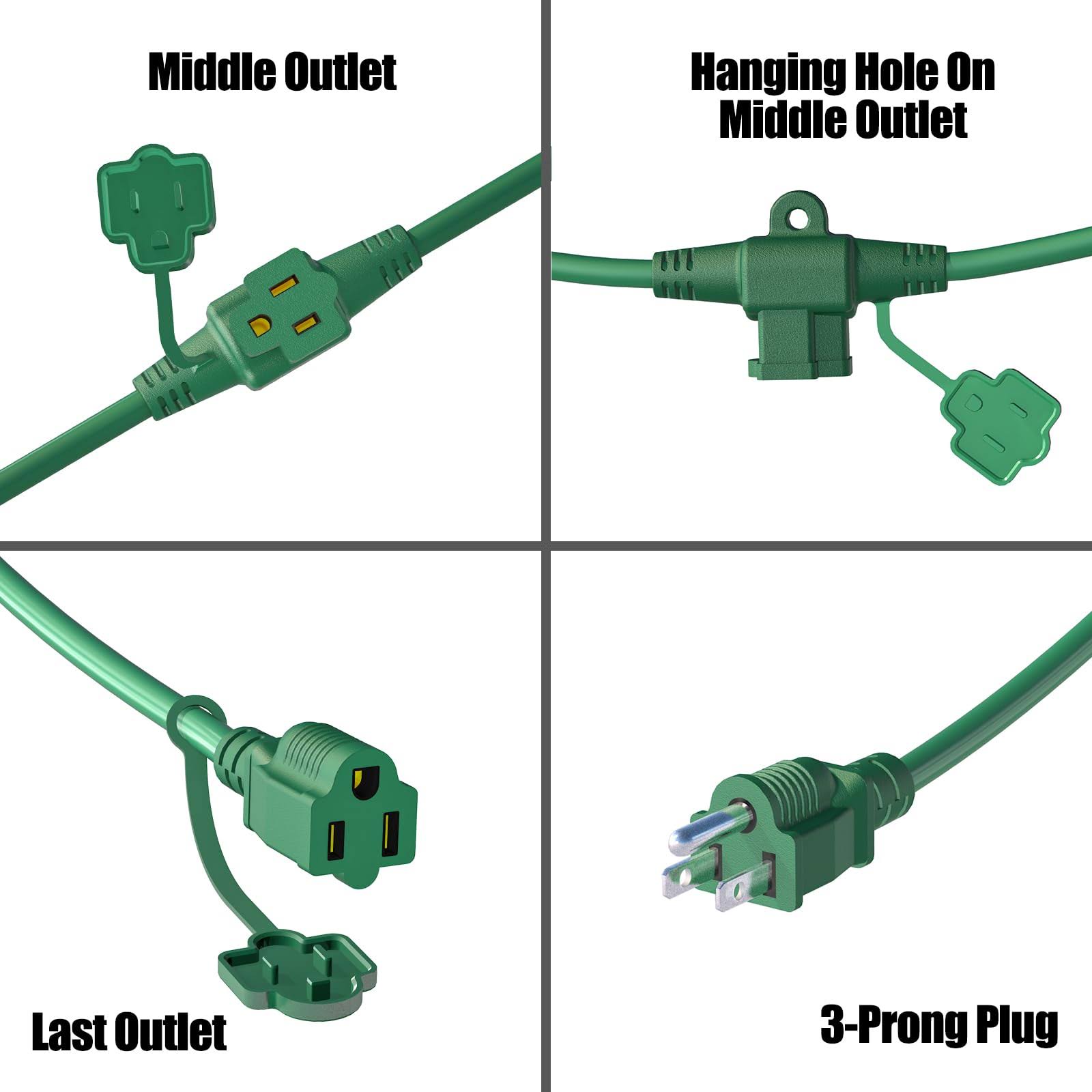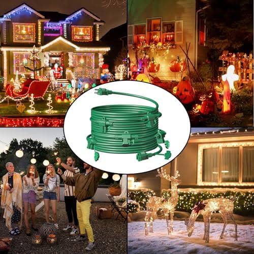 50ft Outdoor Extension Cord with 6 Outlets Evenly Spaced����, with Waterproof Cover, Ideal for Outdoor Decoration Lawn Patio Lights, 16AWG/3C SJTW,