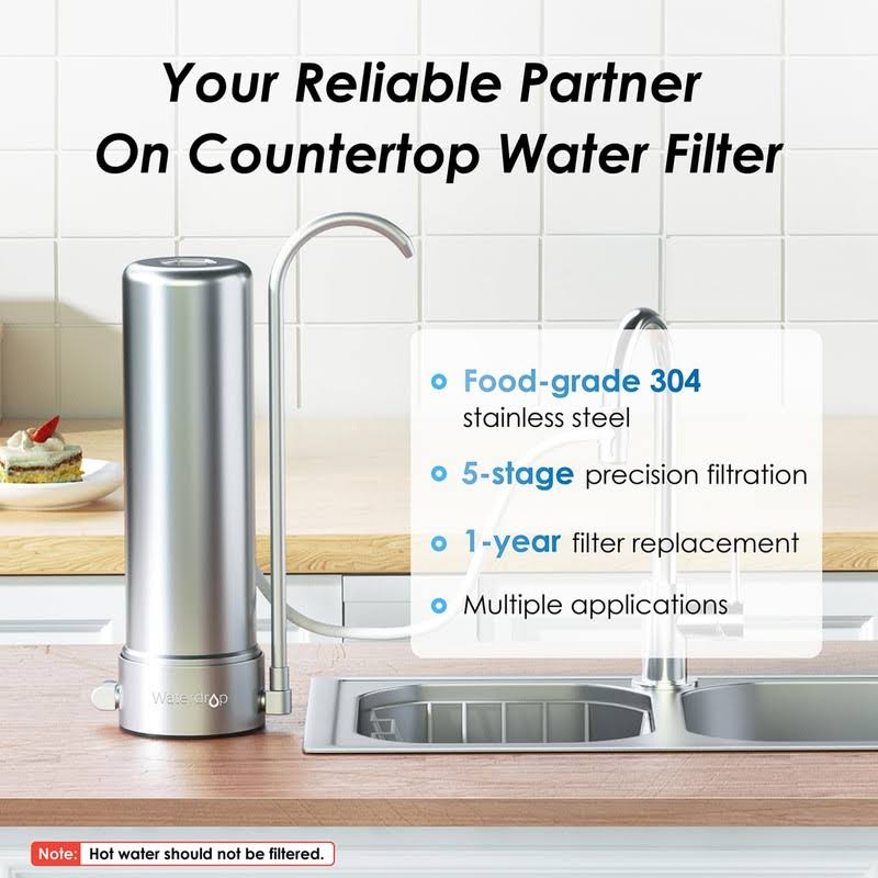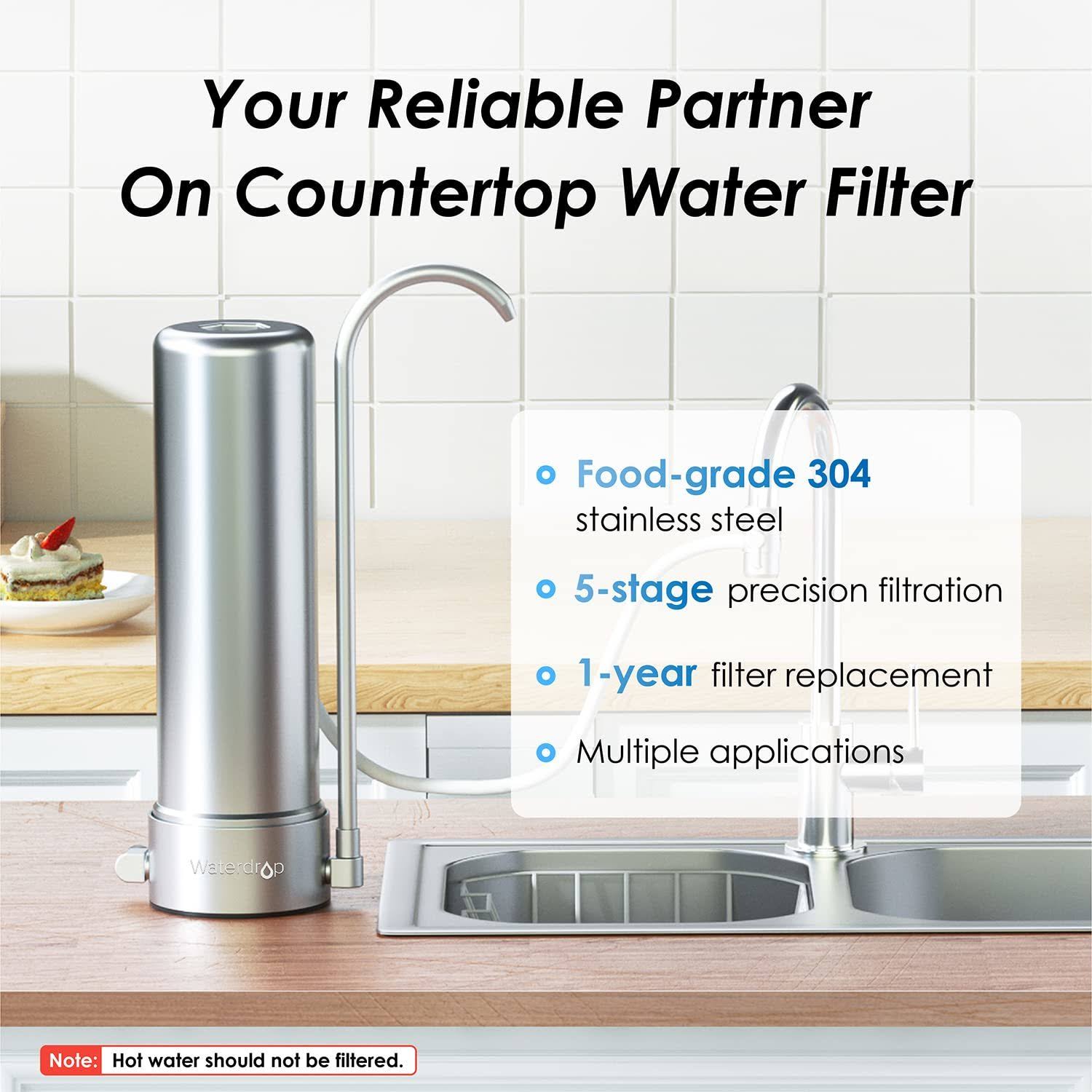Waterdrop Countertop Filter System, 5-Stage Stainless Steel Countertop Filter, 8000 Gallons Faucet Water Filter, Reduces Heav