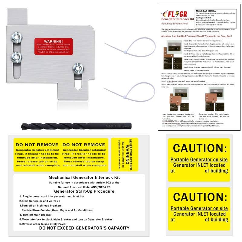 Flngr Generator Interlock Kit Compatible with Horizontal Main Cutler Hammer Only CH Series Tan Breaker 150 or 200 Amp Panels, 1 1/2 inch Spacing