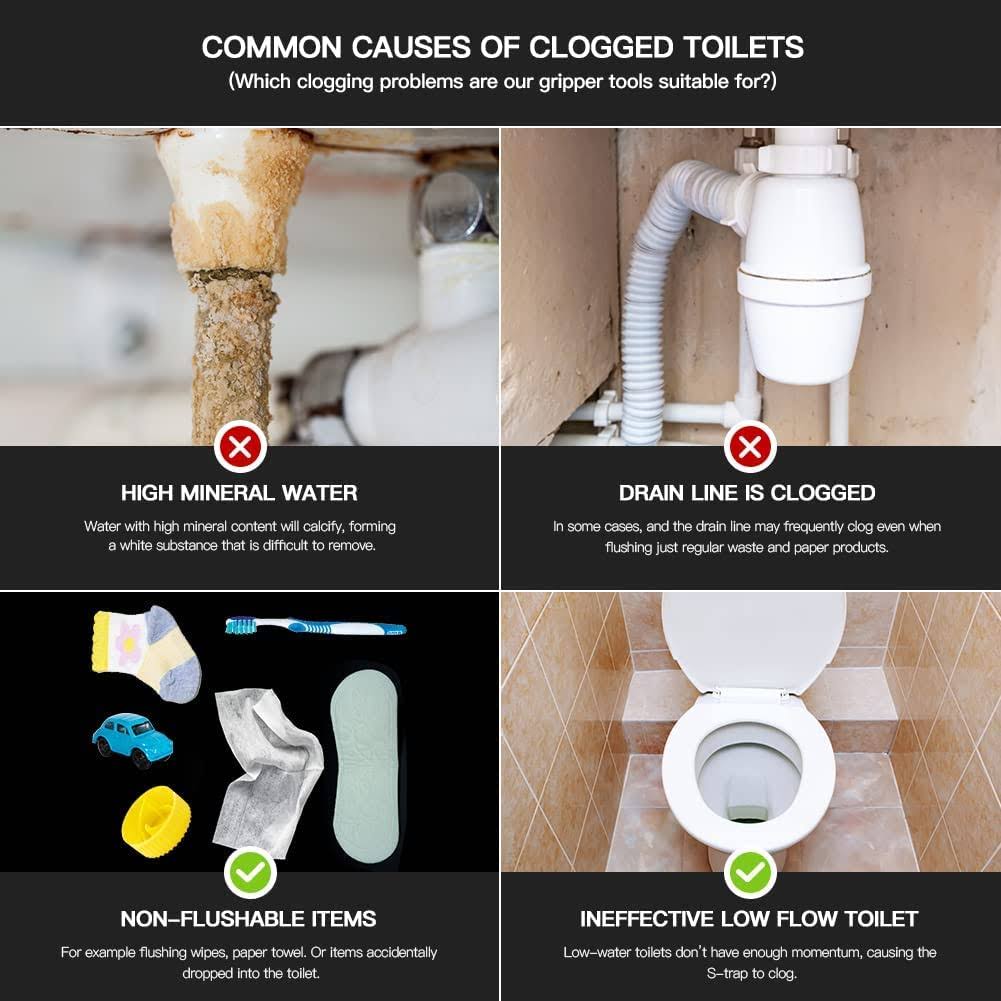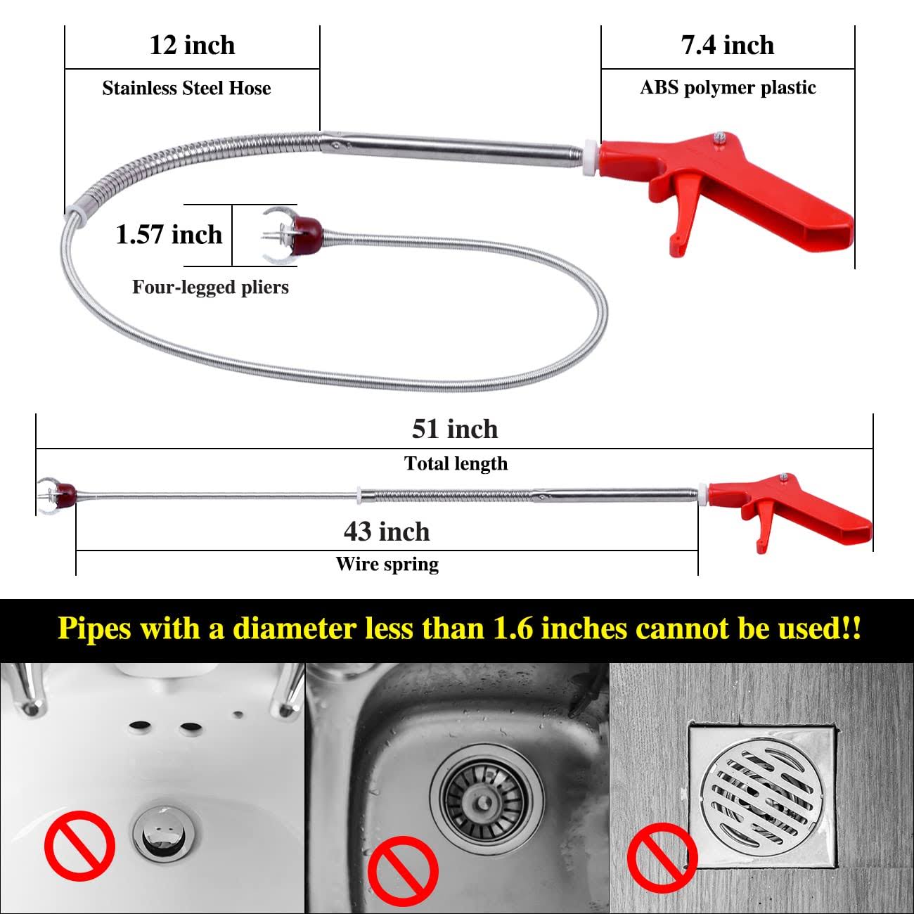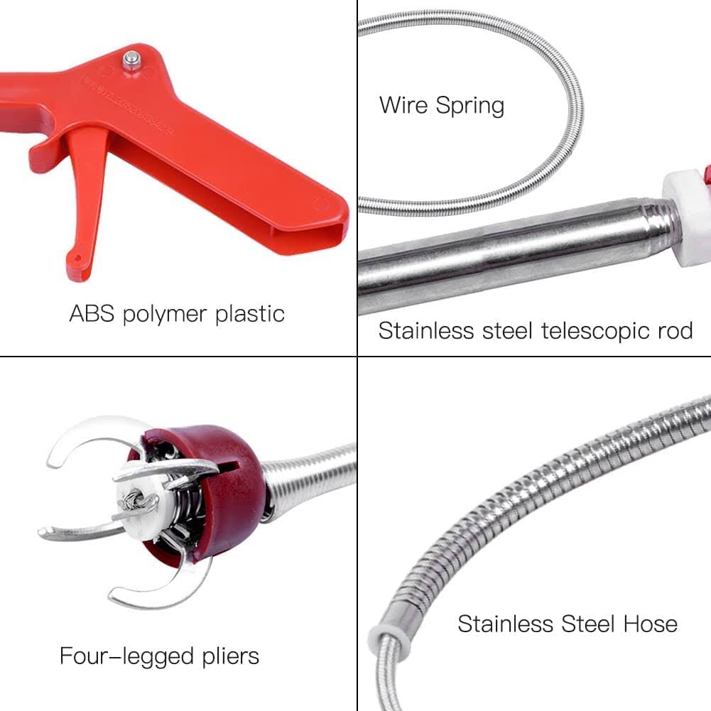 51"Toilet Auger Clog Remover Tool with Grabber Flexible Toilet Snake Grabber Unclogger Tool, Four-Claw Picker, Stainless Steel Telescoping Rod, for