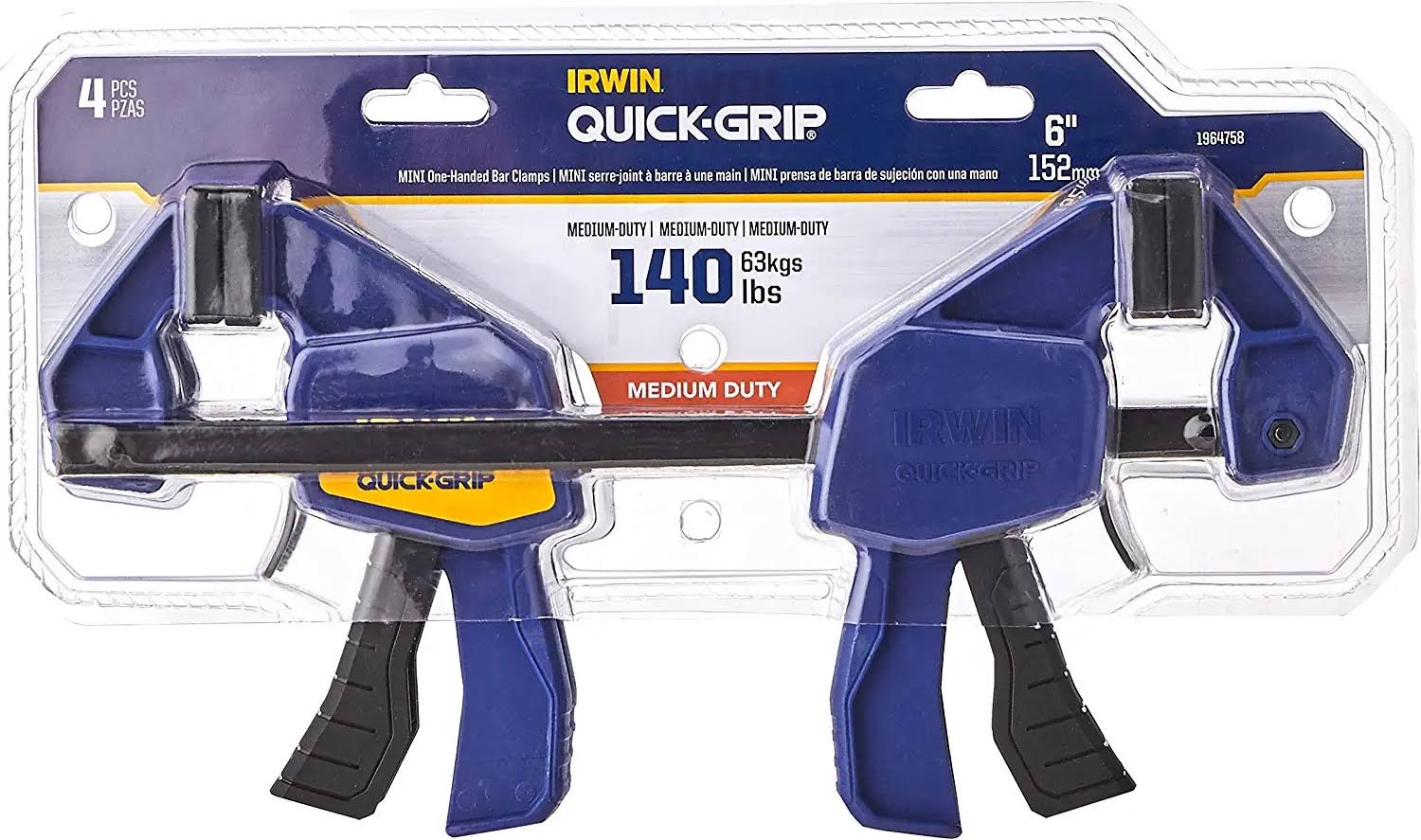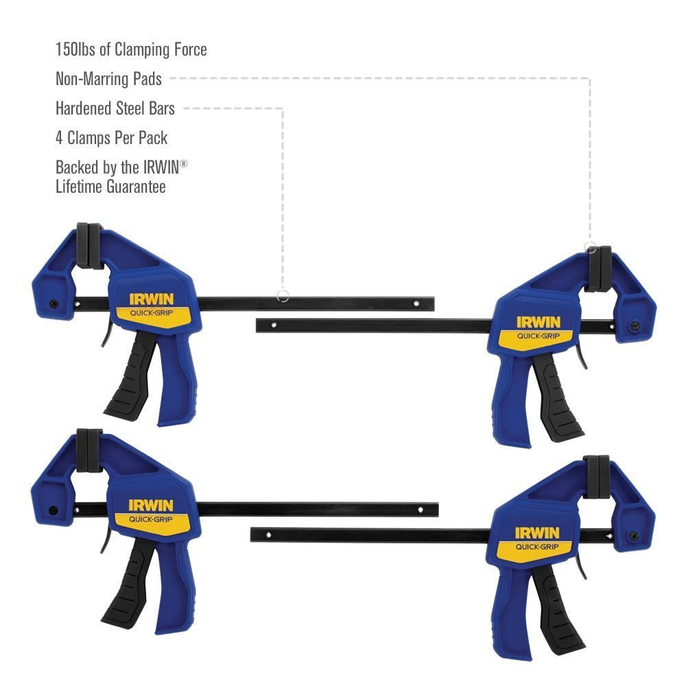 Irwin Quick-Grip 1964758 One-Handed Mini Bar Clamp 4 Pack, 6"