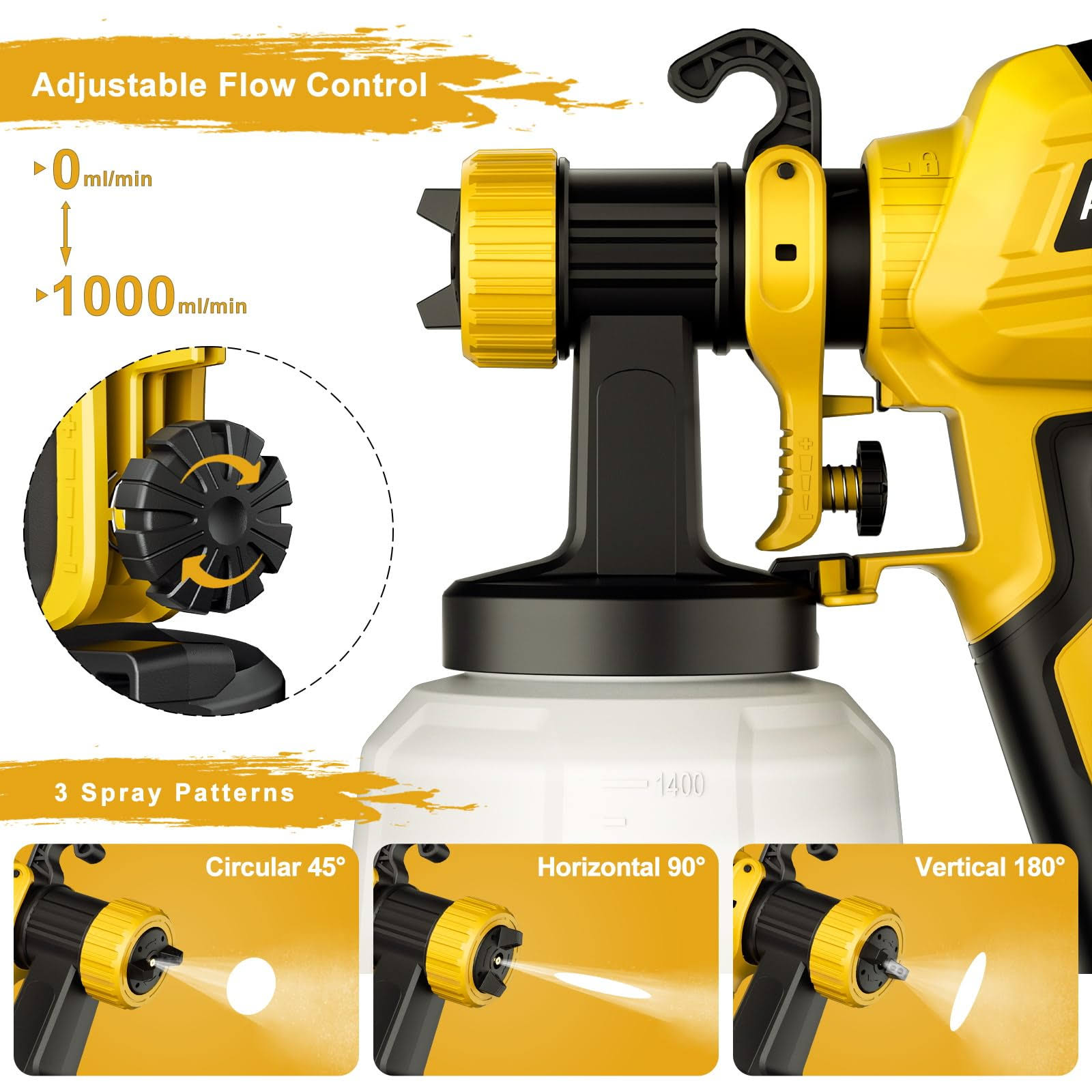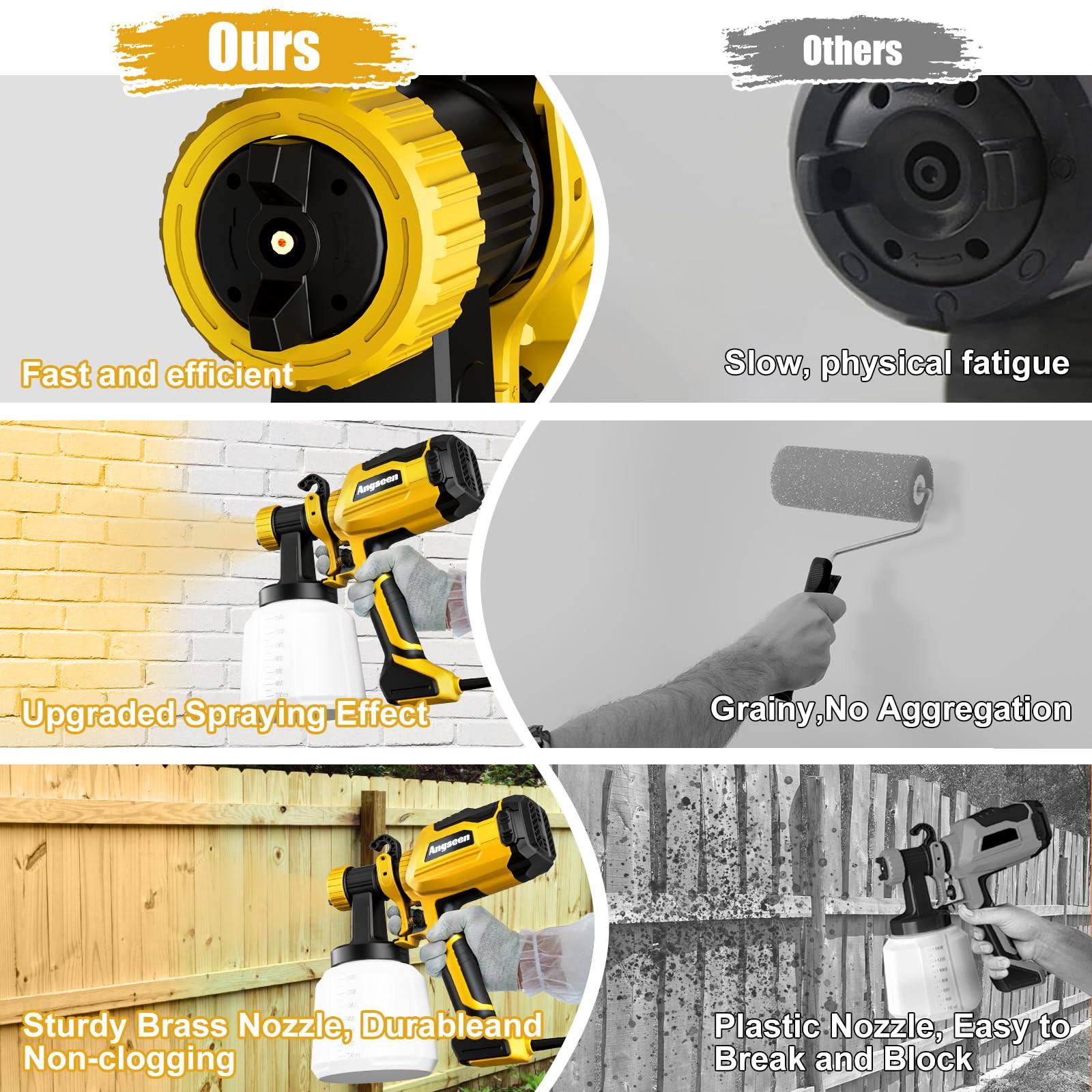 Angseen Paint Sprayer, HVLP Electric Paint Sprayer with 1400ml Container, 4 Copper Nozzles, 3 Spray Patterns for Home Interior and Exterior, House SPA8001