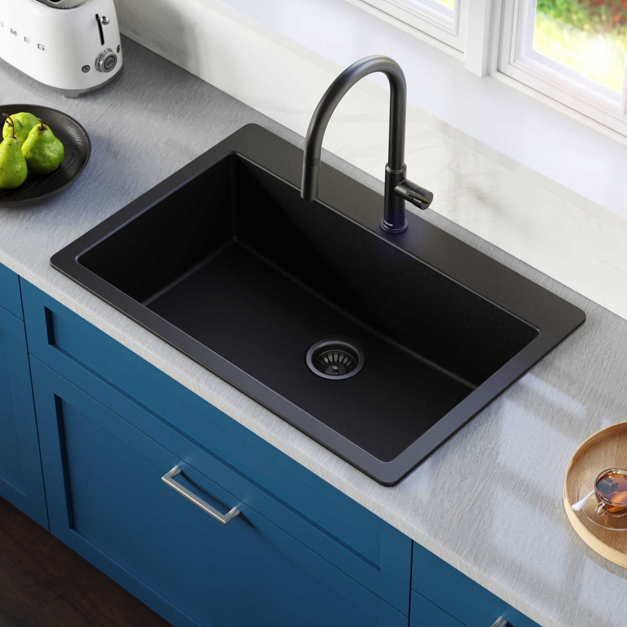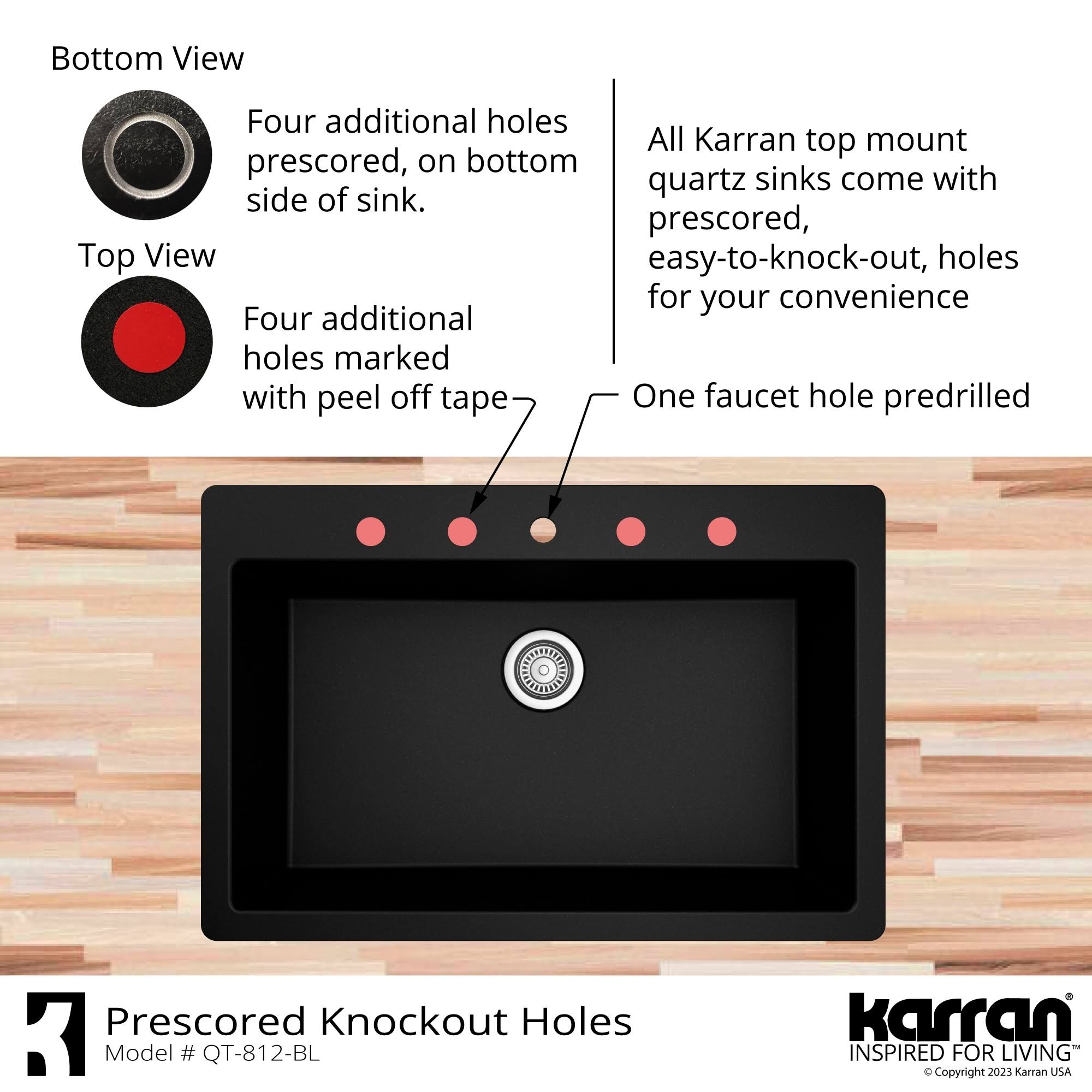 Karran Quartz 33 in. Large Single Bowl Drop-In Kitchen Sink in Black QT-812