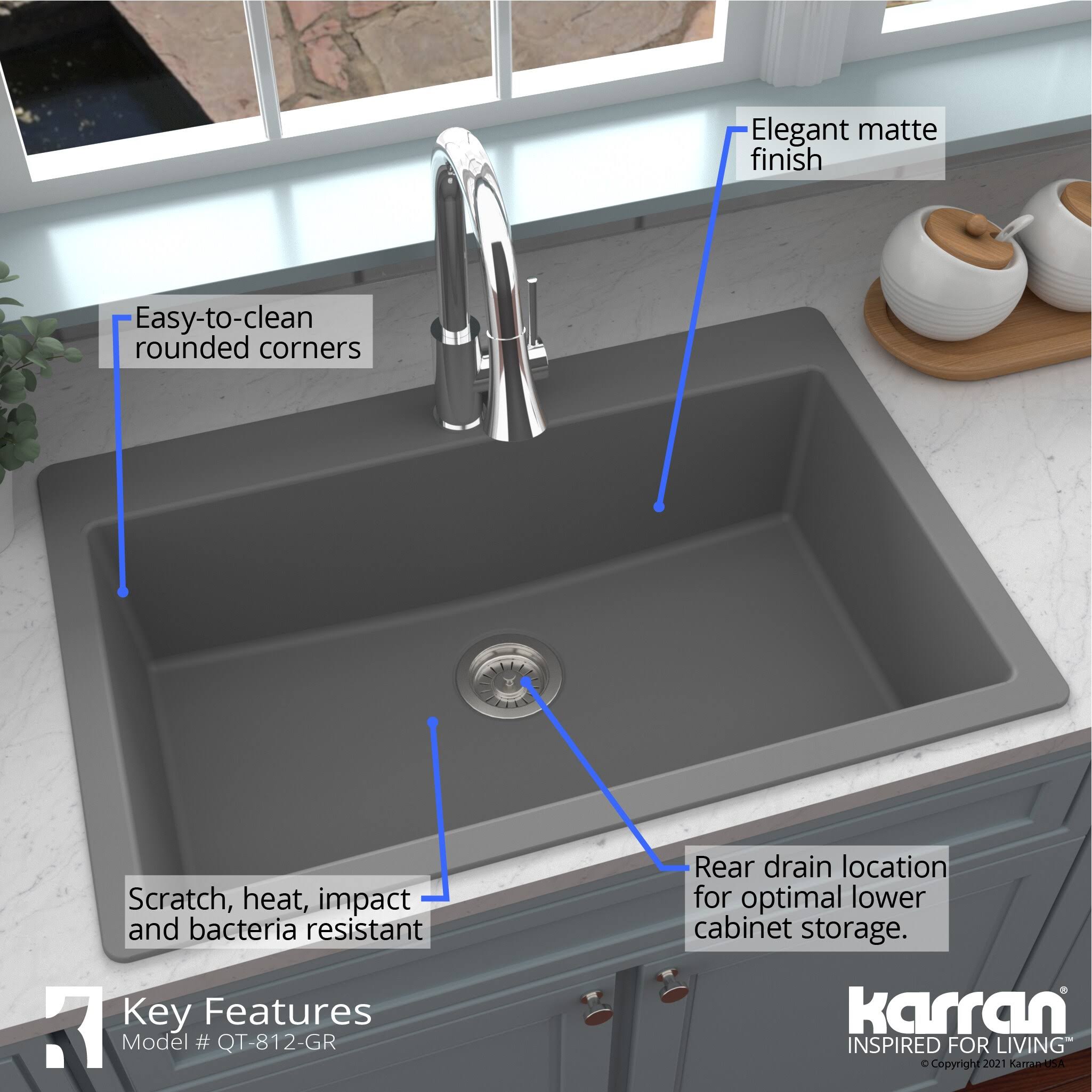 Karran QT-812 Quartz 33 in. Large Single Bowl Drop-In Kitchen Sink in Grey