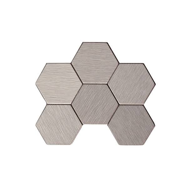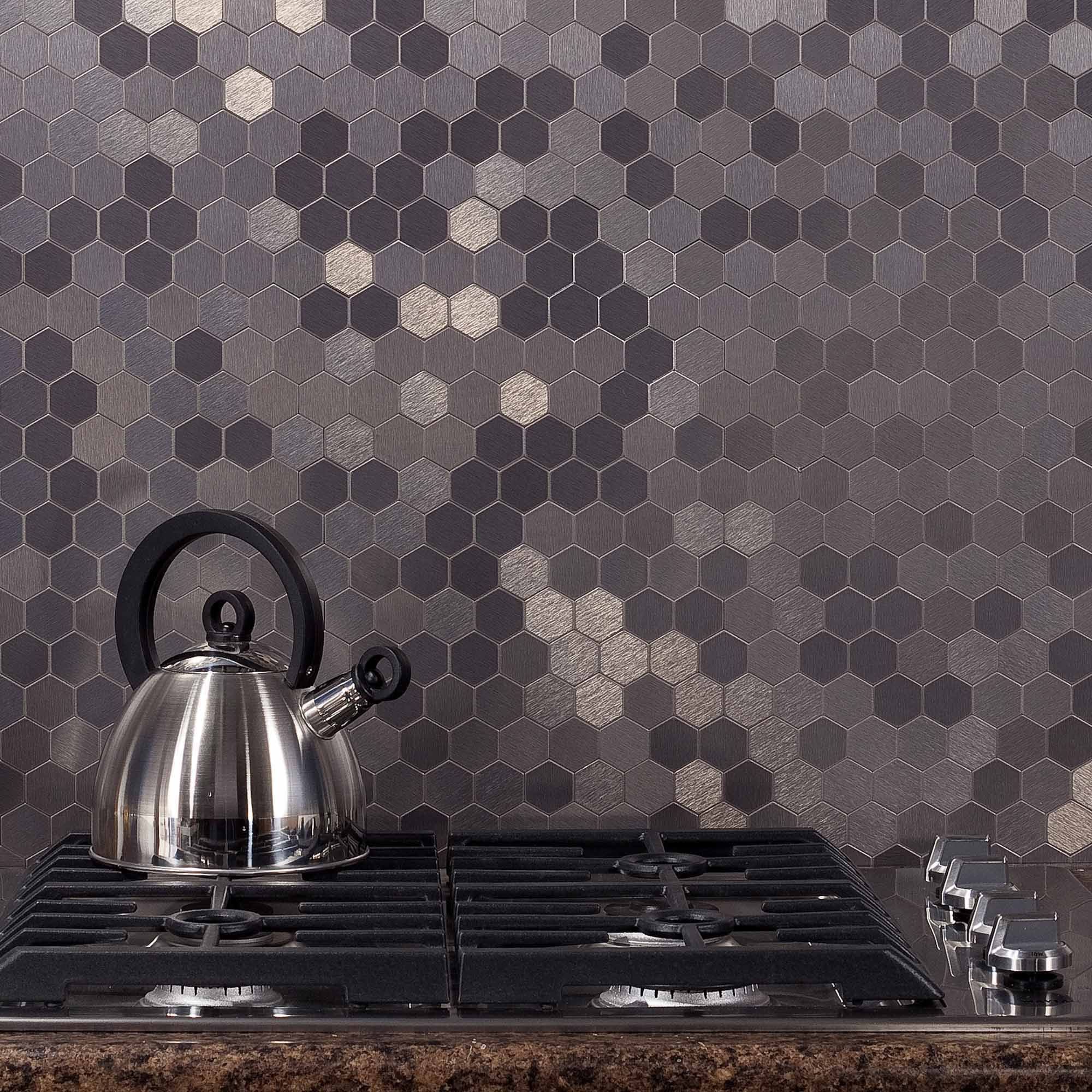 Aspect 12-Inch x 4-Inch Peel and Stick Brushed Stainless Honeycomb Matted Metal Backsplash Tile, 3-Pack