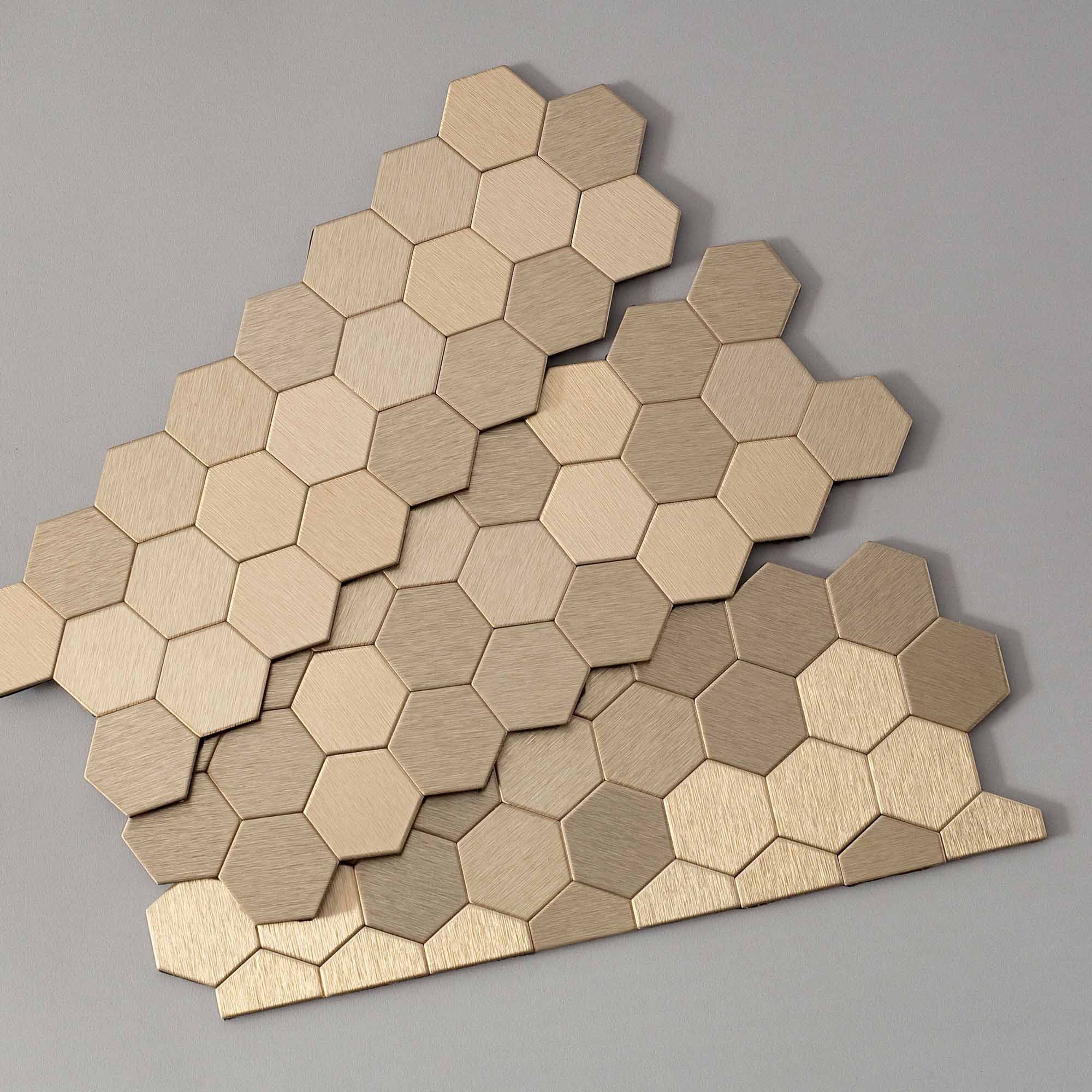 Aspect Peel and Stick Backsplash 11in x 4in Honeycomb Champagne Matted Metal Tile for Kitchen Bathrooms 3-Pack