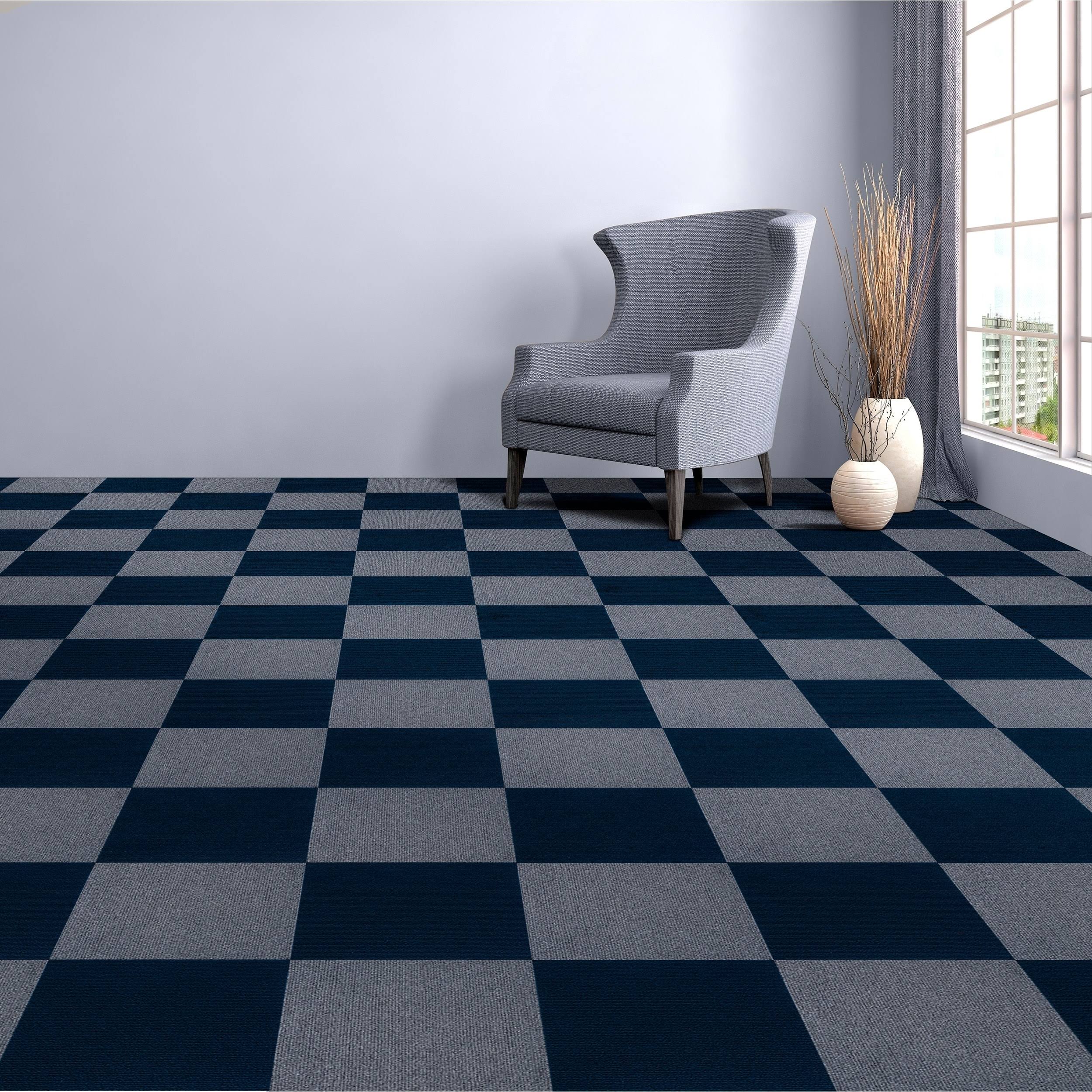 Achim Nexus Solid 12 Piece Self Adhesive Carpet Floor Tile Set, Blue