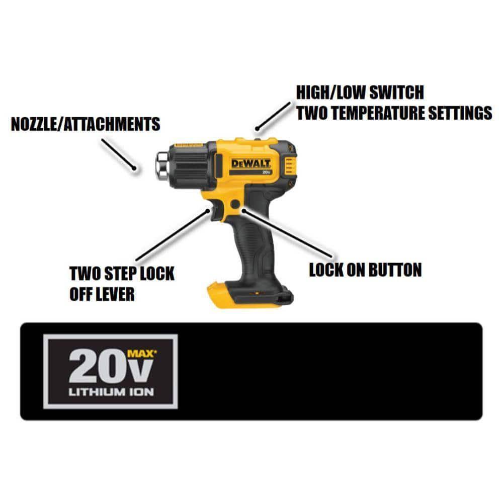 DeWalt 20V Max Cordless Compact Heat Gun with Flat and Hook Nozzle Attachments, 20V 4.0Ah Battery, and 12V- 20V Max Charger