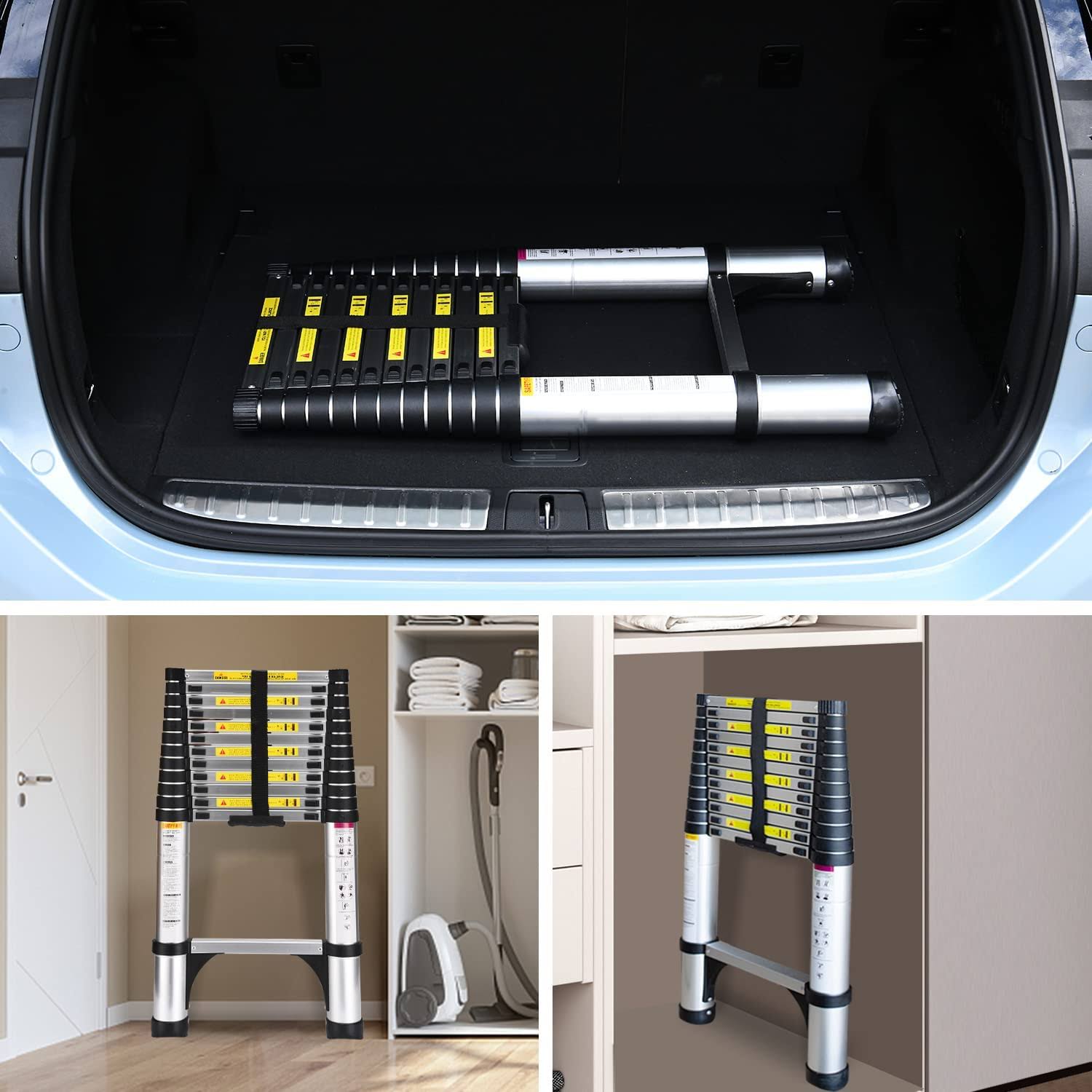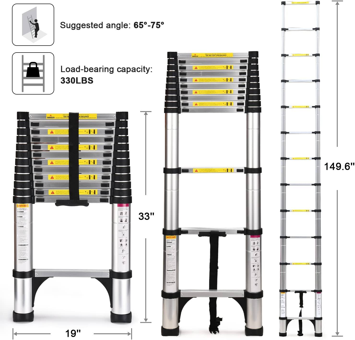 Telescoping Ladder, SocTone 12.5 ft Aluminum Lightweight Extension Ladder with 2 Triangle Stabilizers, Heavy Duty 330lbs Max Capacity