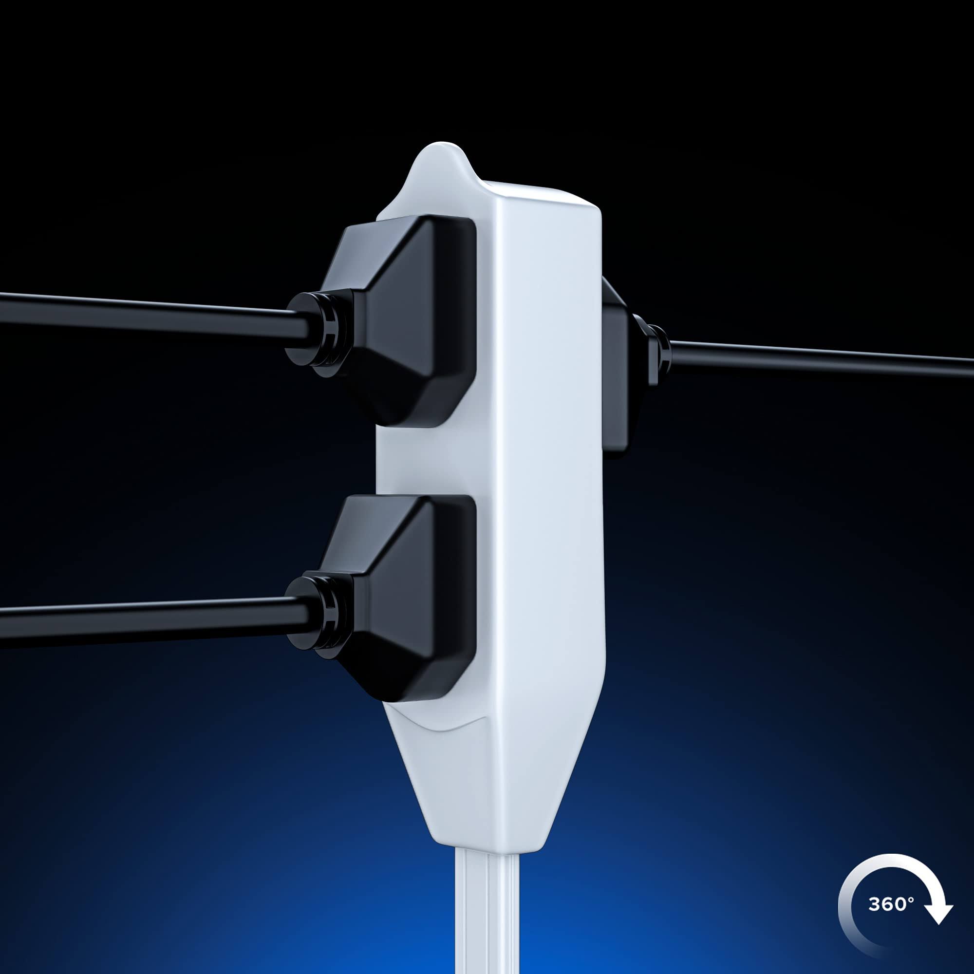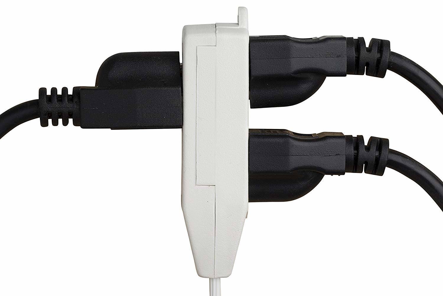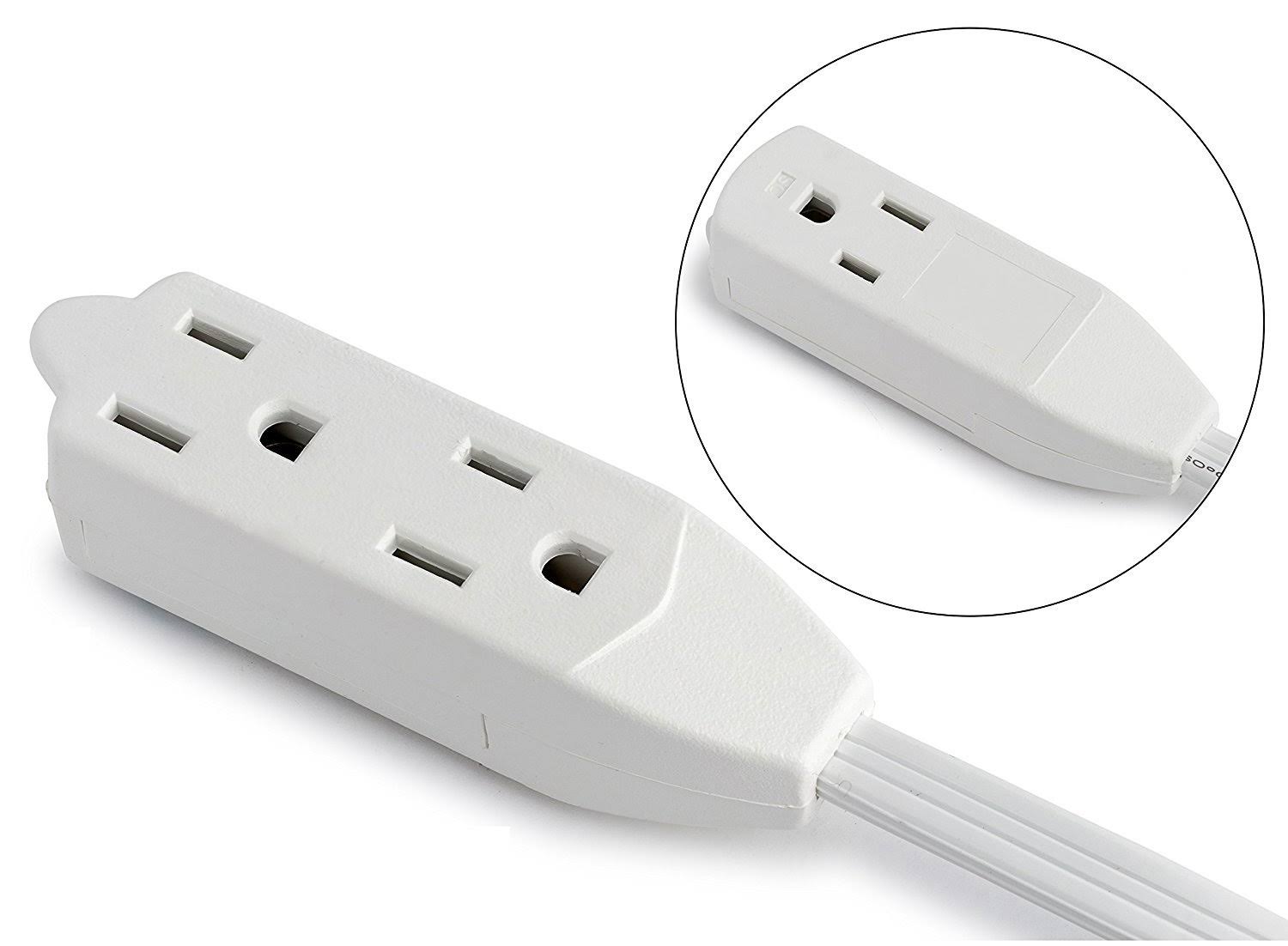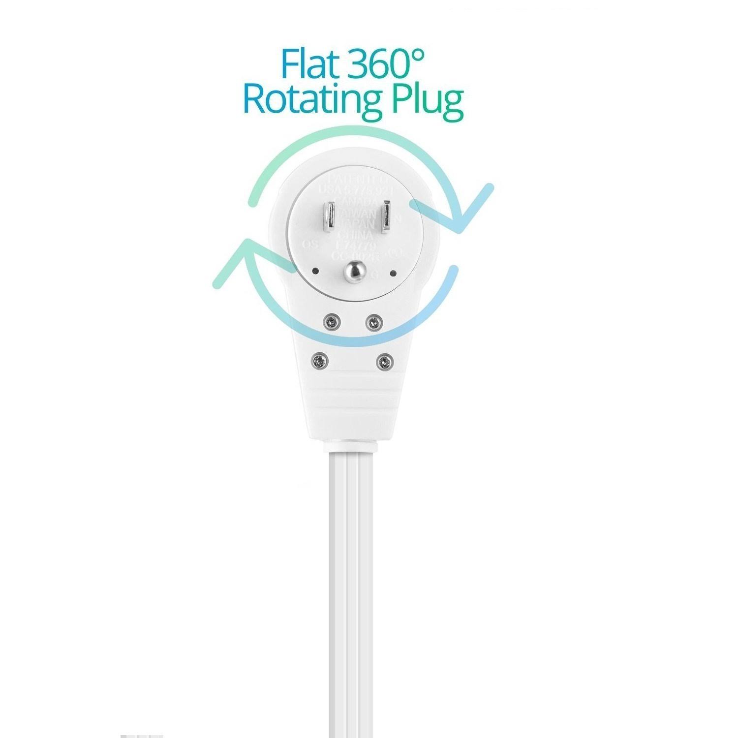 Maximm Cable 10 ft 360 Rotating Flat Plug Extension Cord / Wire, 16 AWG Multi 3 Outlet Extension Wire, 3 Prong Grounded Wire White UL Listed