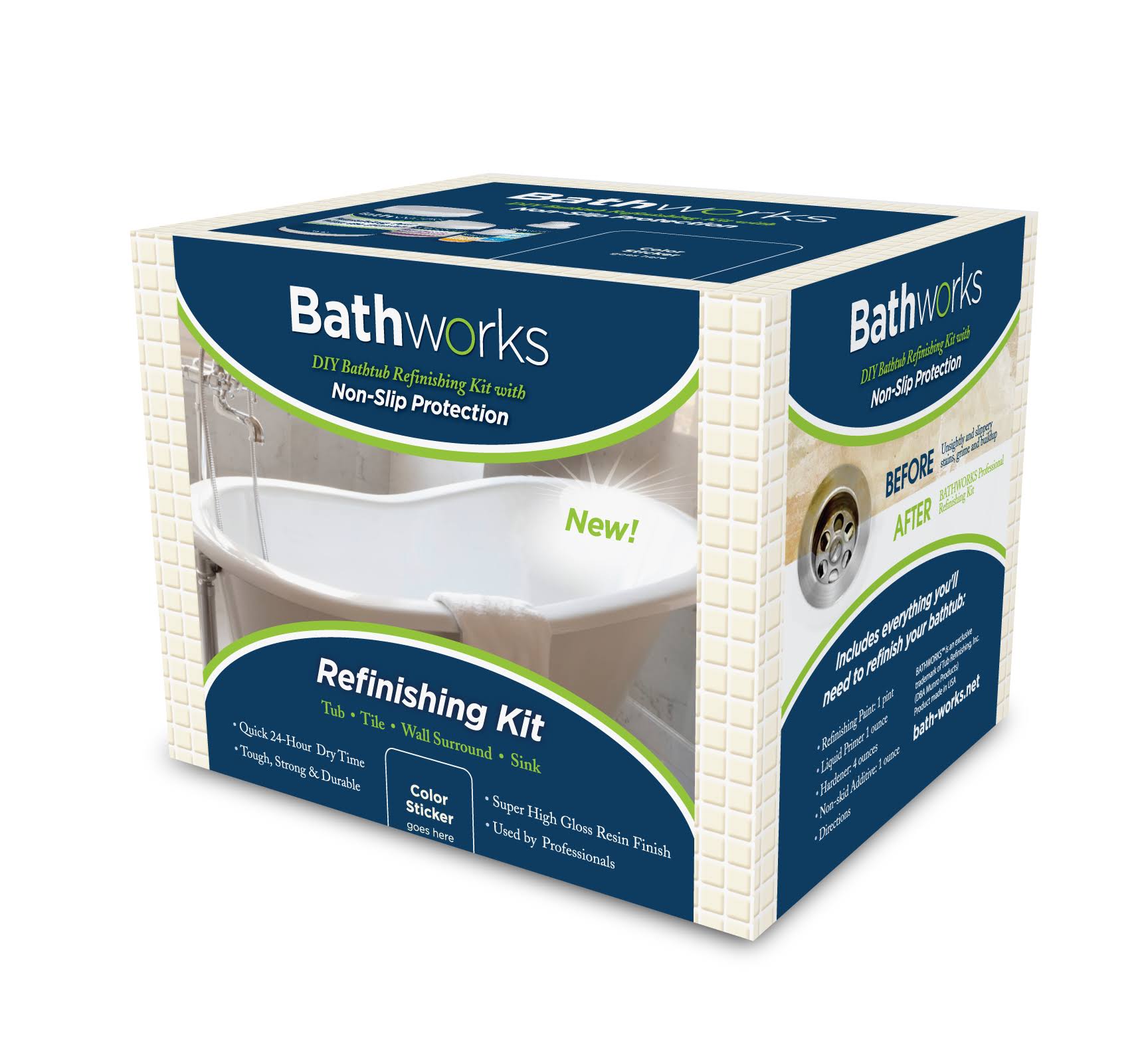 Bathworks 22 oz. Almond Standard Tub and Tile Refinishing Kit with Non-Slip Protection, Almond/High Gloss