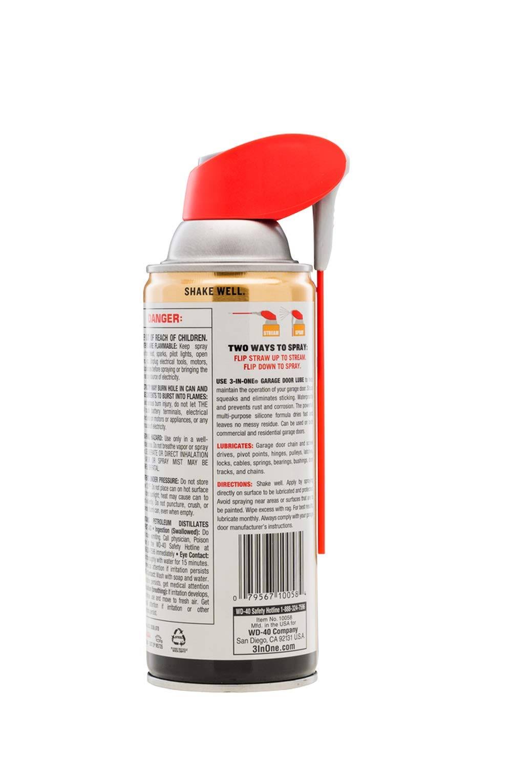 3-in-one Professional Garage Door Lubricant with Smart Straw Sprays 2 Ways, 11 oz Twin Pack, 100584, Clear