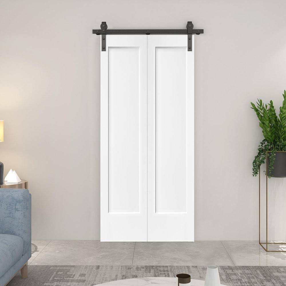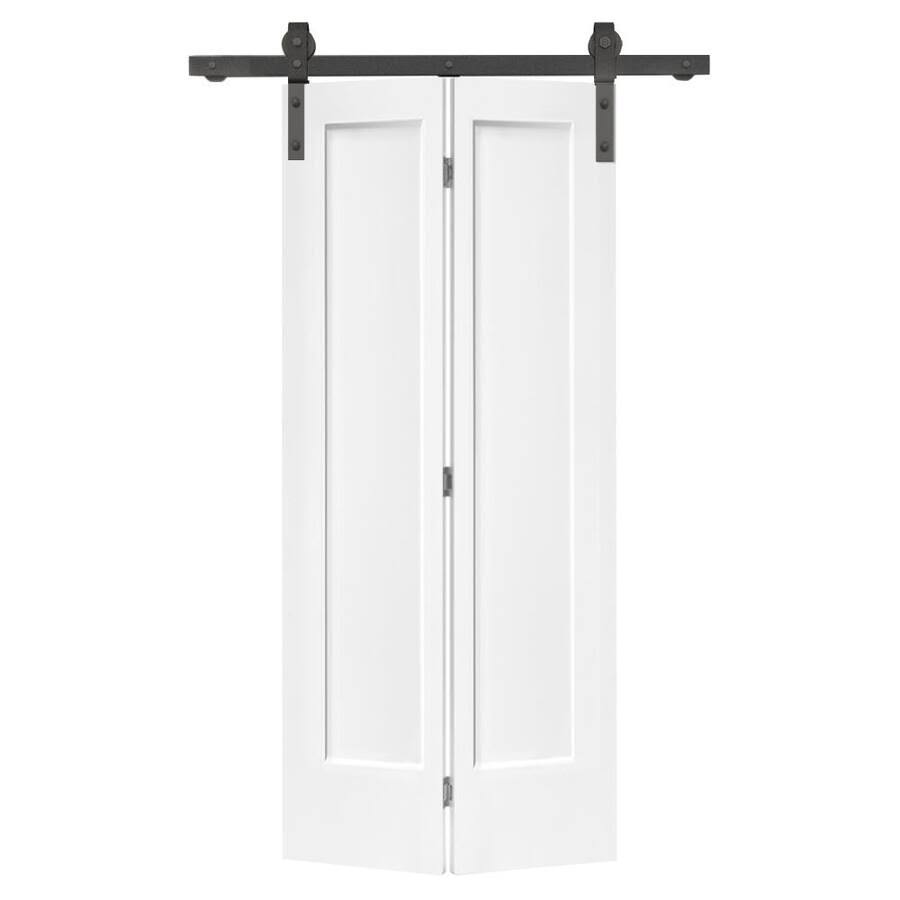 Paneled MDF Composite Bifold Barn Door with Installation Hardware Kit CALHOME Finish: Primed White, Size: 36" x 80"