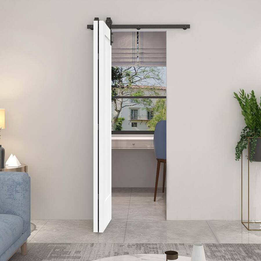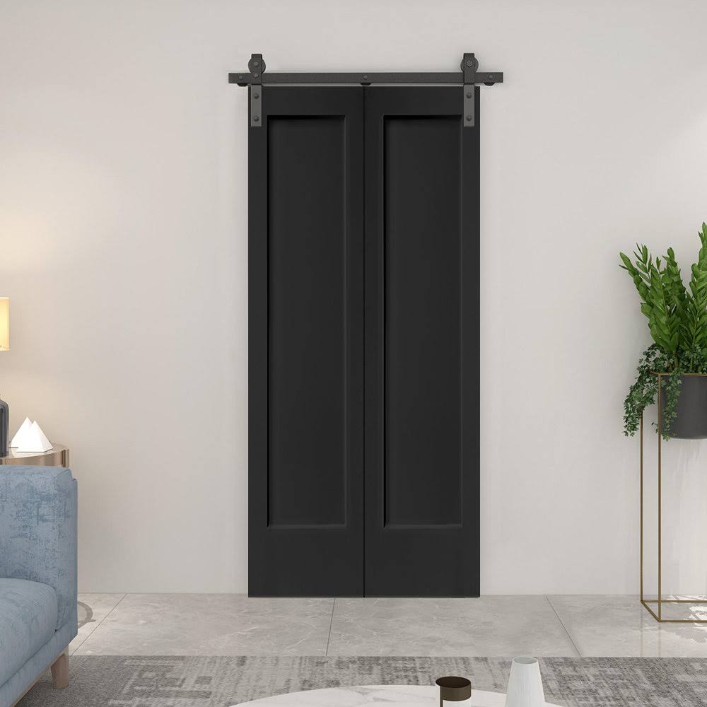 CALHOME 36 in. x 80 in. 1 Panel Shaker Black Painted MDF Composite Bi-Fold Barn Door with Sliding Hardware Kit