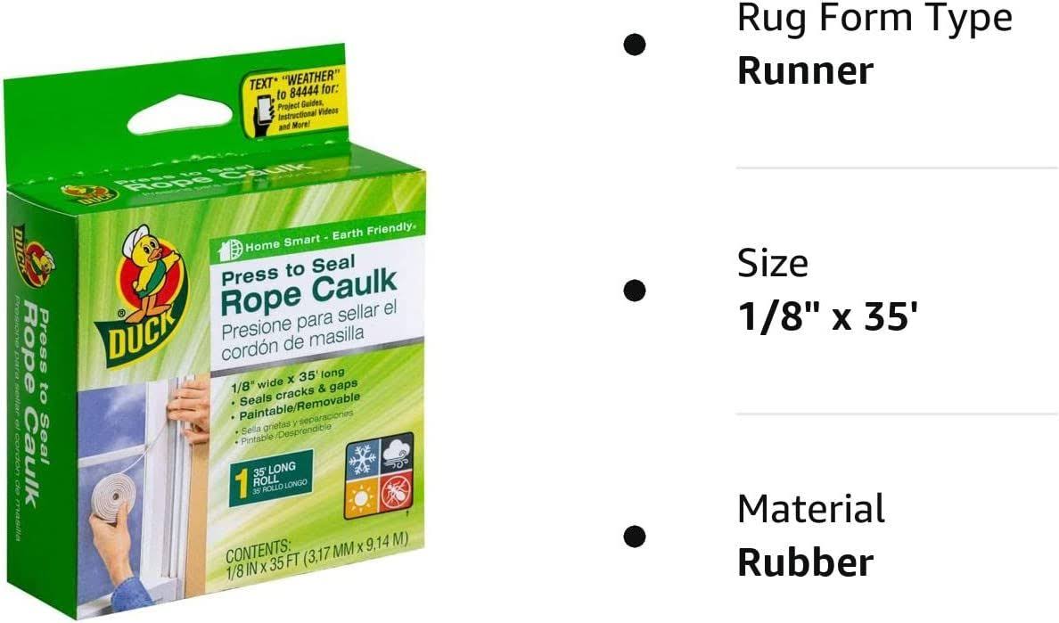 Duck Brand Press to Seal Rope Caulk, White, 1/8-Inch Wide x 35-Feet Long, Roll