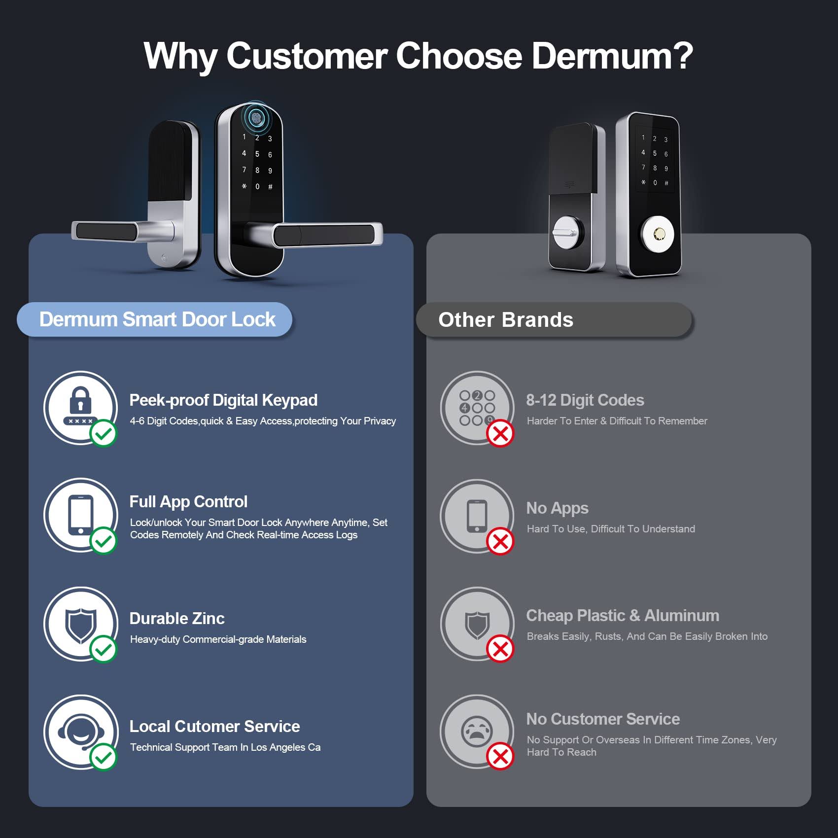 Dermum Smart Lock, Keyless Entry Door Lock, Smart Door Lock, Smart Lock for Front Door, Door Lock with Keypad, Fingerprint Door Lock, Biometric Door