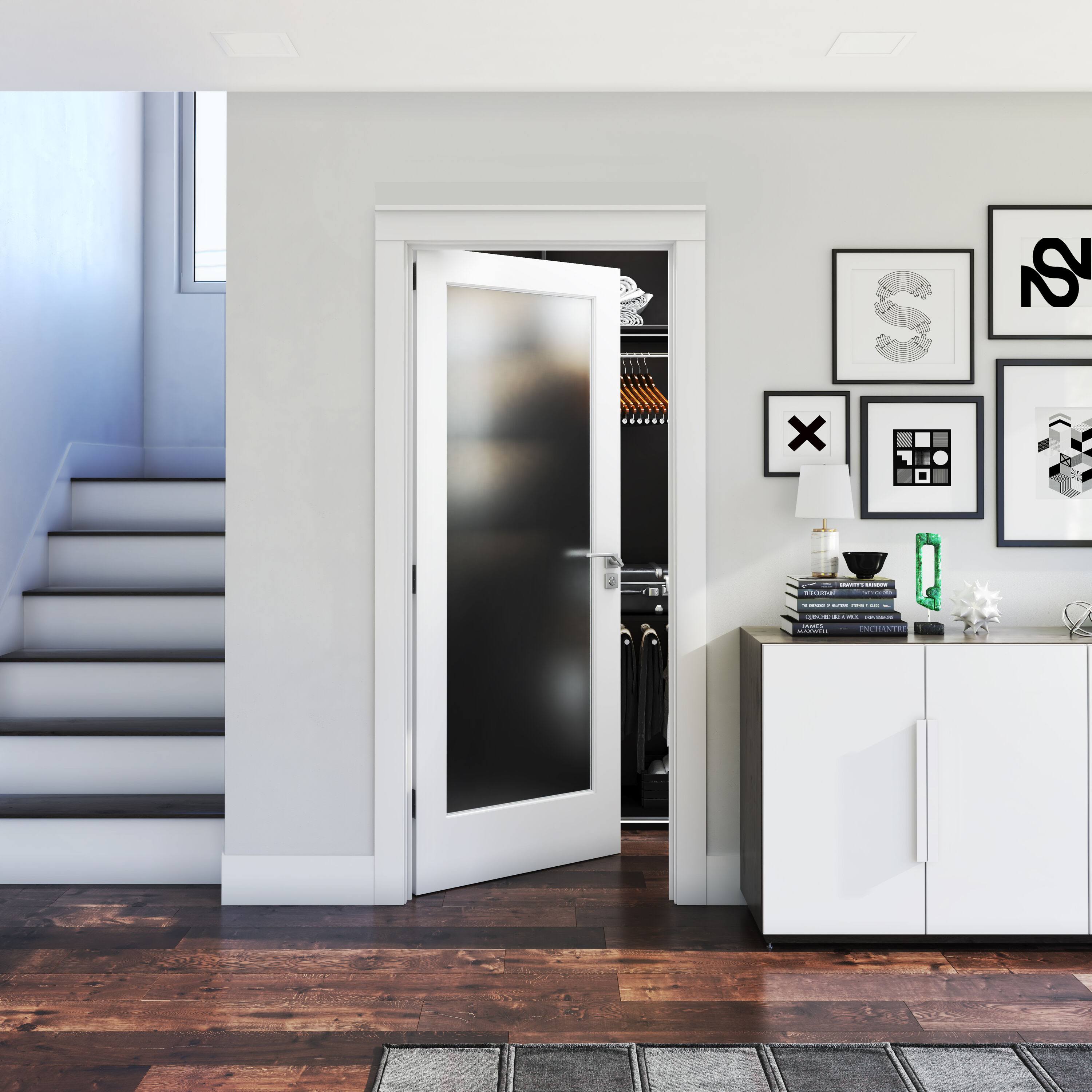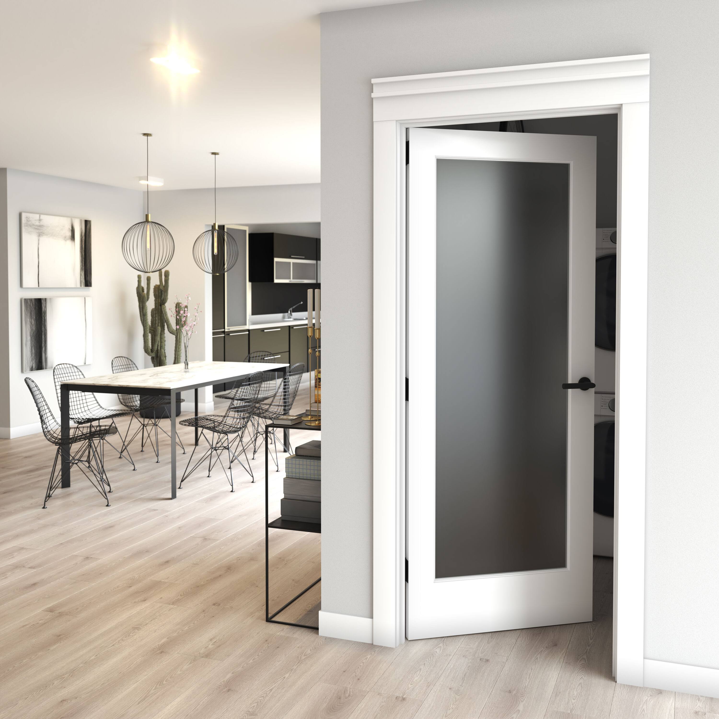EightDoors 30 in. x 80 in. x 1-3/8 in. 1-Lite Solid Core Frosted Glass White Finished Wood French Interior Door Slab, White Primed