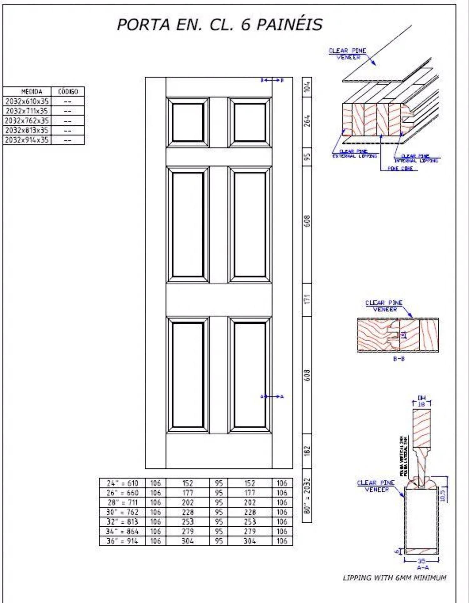 6-Panel Door Solid Pine Kimberly Bay Interior Slab Colonial