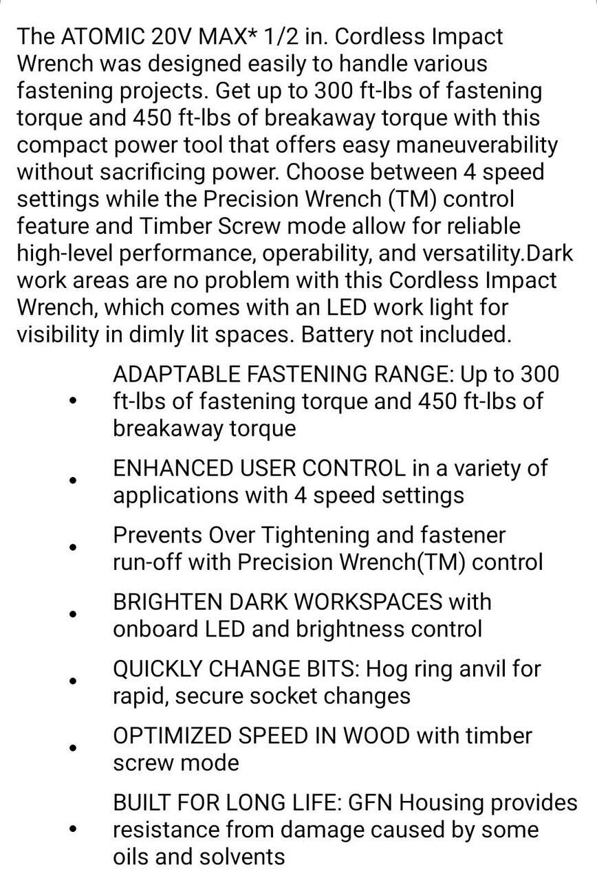 DeWalt Atomic 20V Max Cordless Brushless 1/2 in. Impact Wrench (Tool) DCF921B