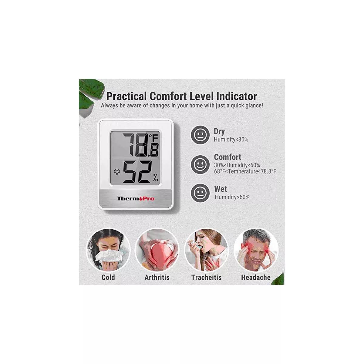 ThermoPro TP49 Digital Hygrometer Indoor Thermometer Humidity Meter Room Thermometer with Temperature and Humidity Monitor Mini Hygrometer
