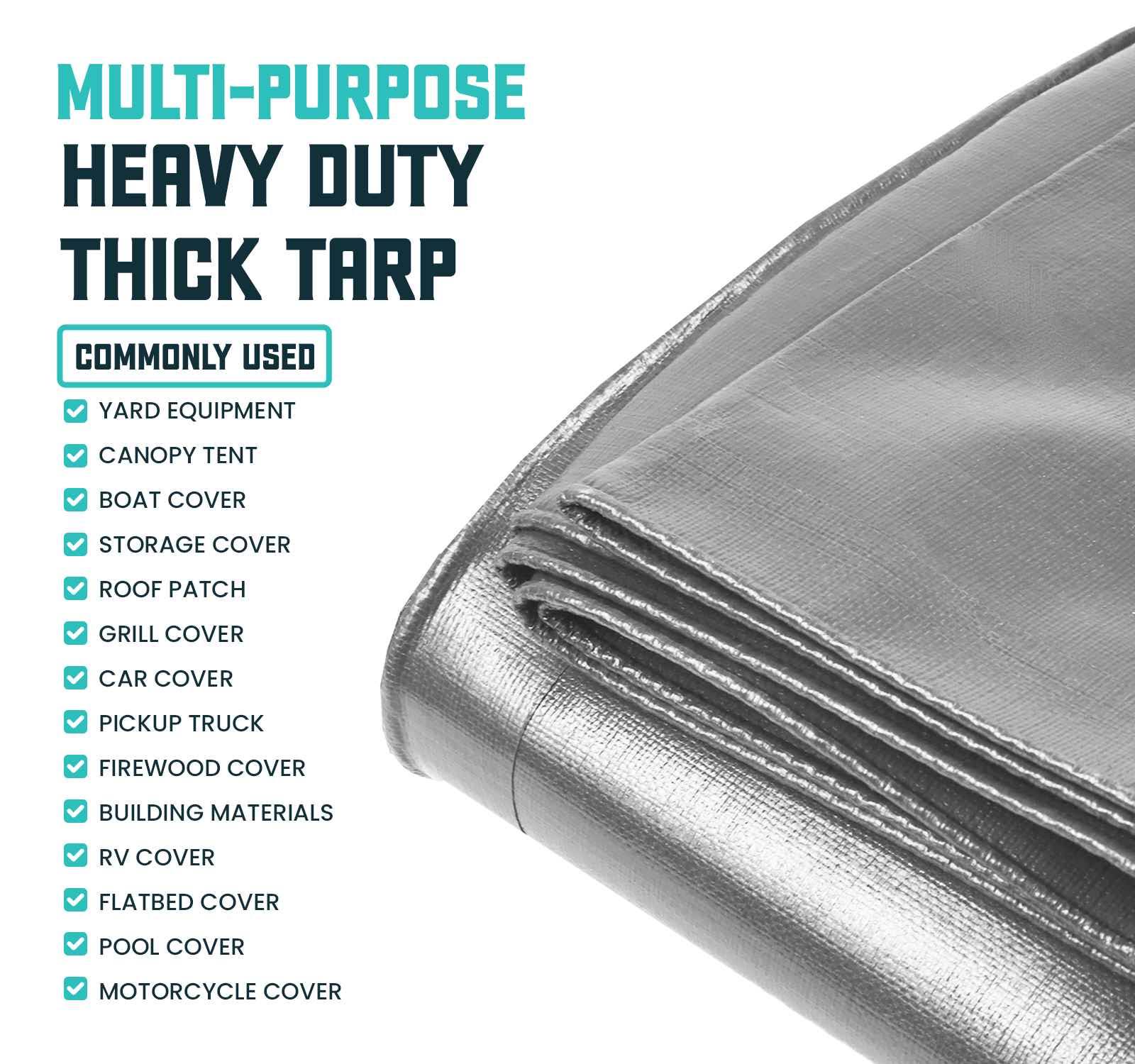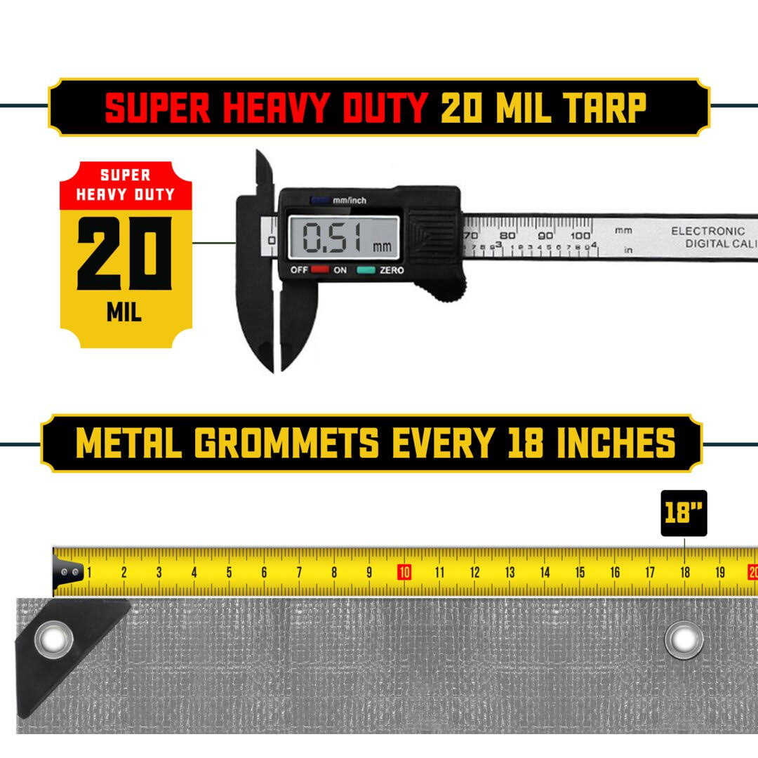 Core Tarps Extreme Heavy Duty 20 Mil Tarp, Silver/Black 8 x 10
