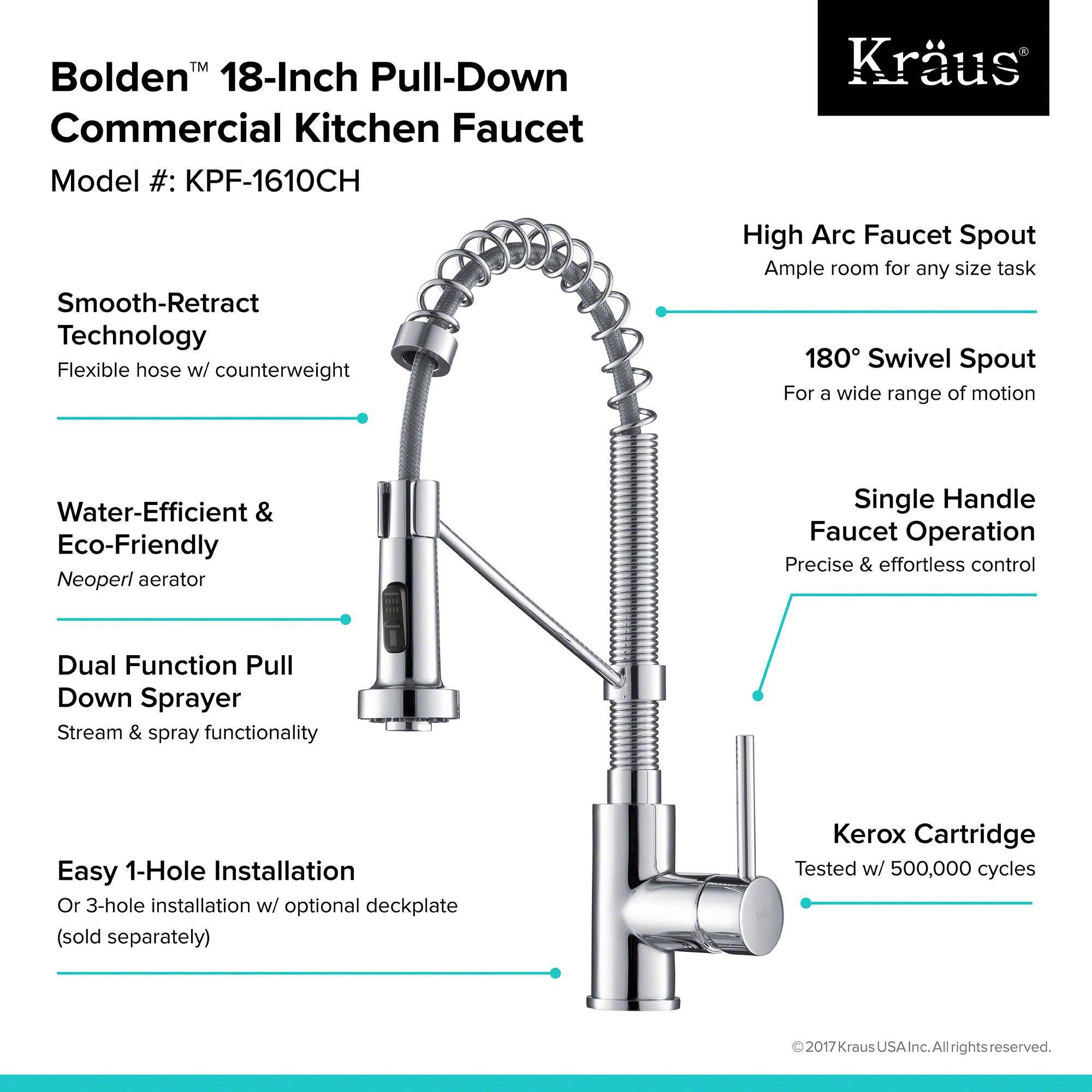 Kraus KPF-1610CH Bolden Single Handle 18-inch Commercial Kitchen Faucet with Dual Function Pull-Down Sprayhead, Chrome