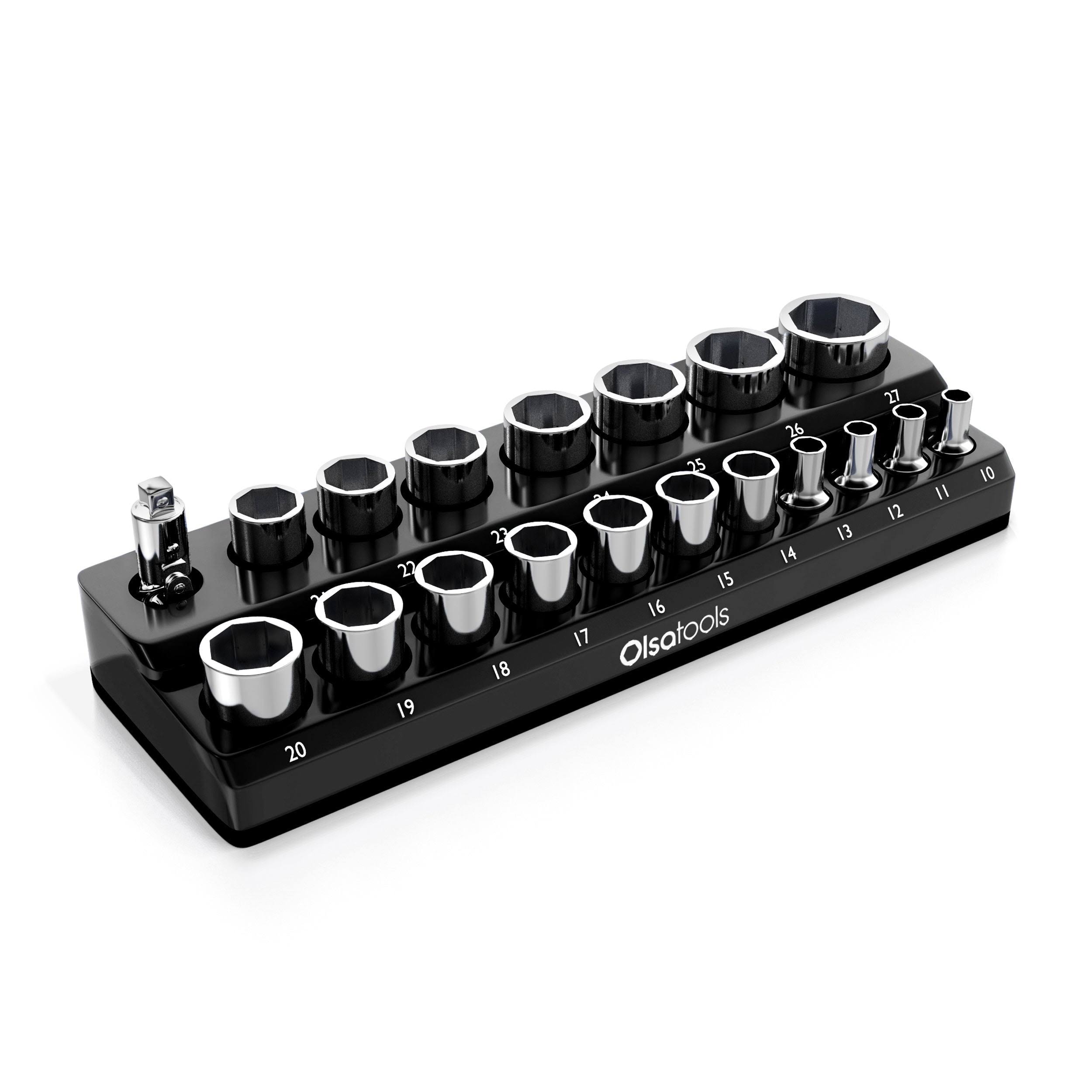 Olsa Tools Magnetic Socket Organizer | 3 Piece Socket Holder Kit | 1/2-Inch