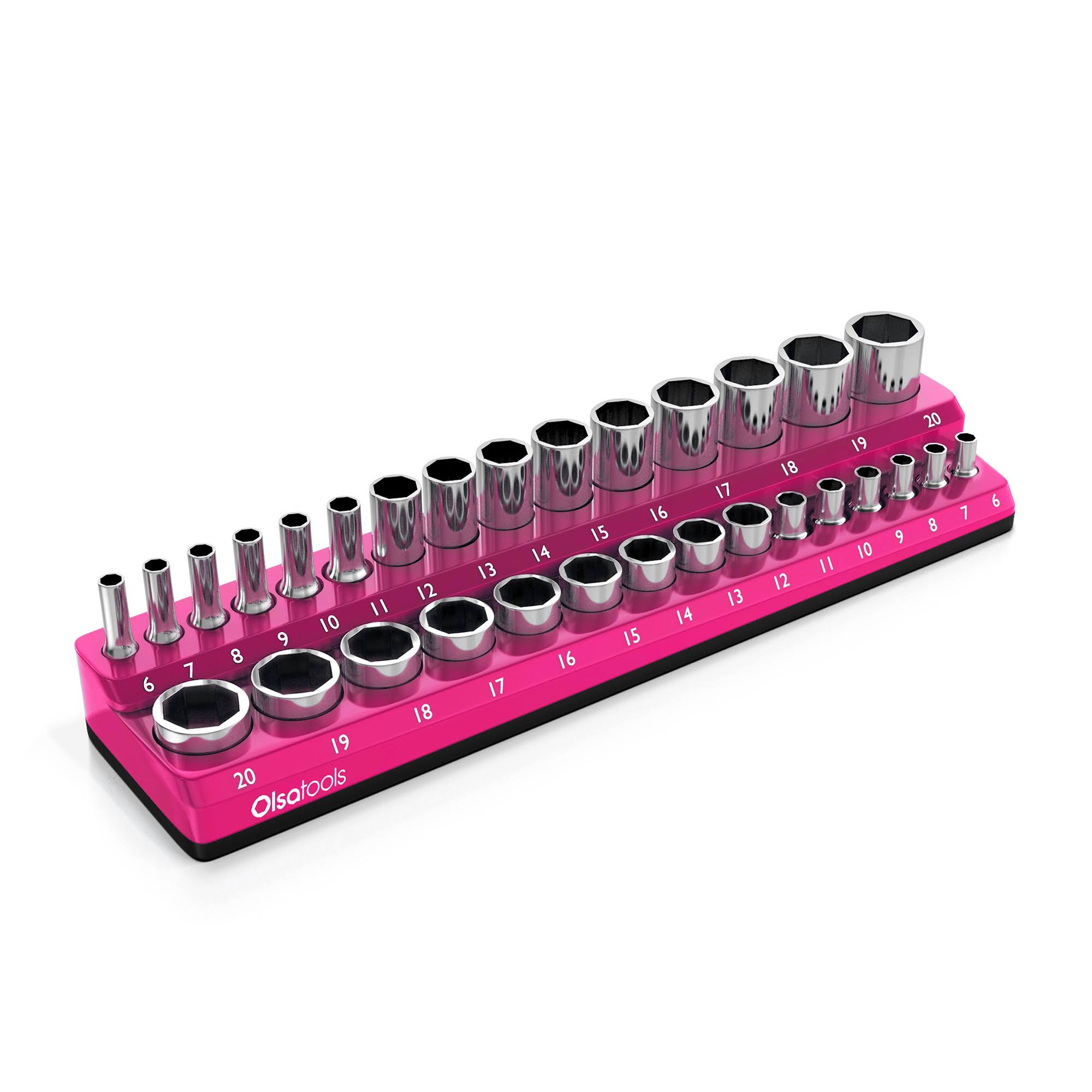 2-Row Magnetic Socket Holder | #1 Top Rated Socket Organizer Metric / 3 PC- 1/2" + 3/8" + 1/4" / Purple