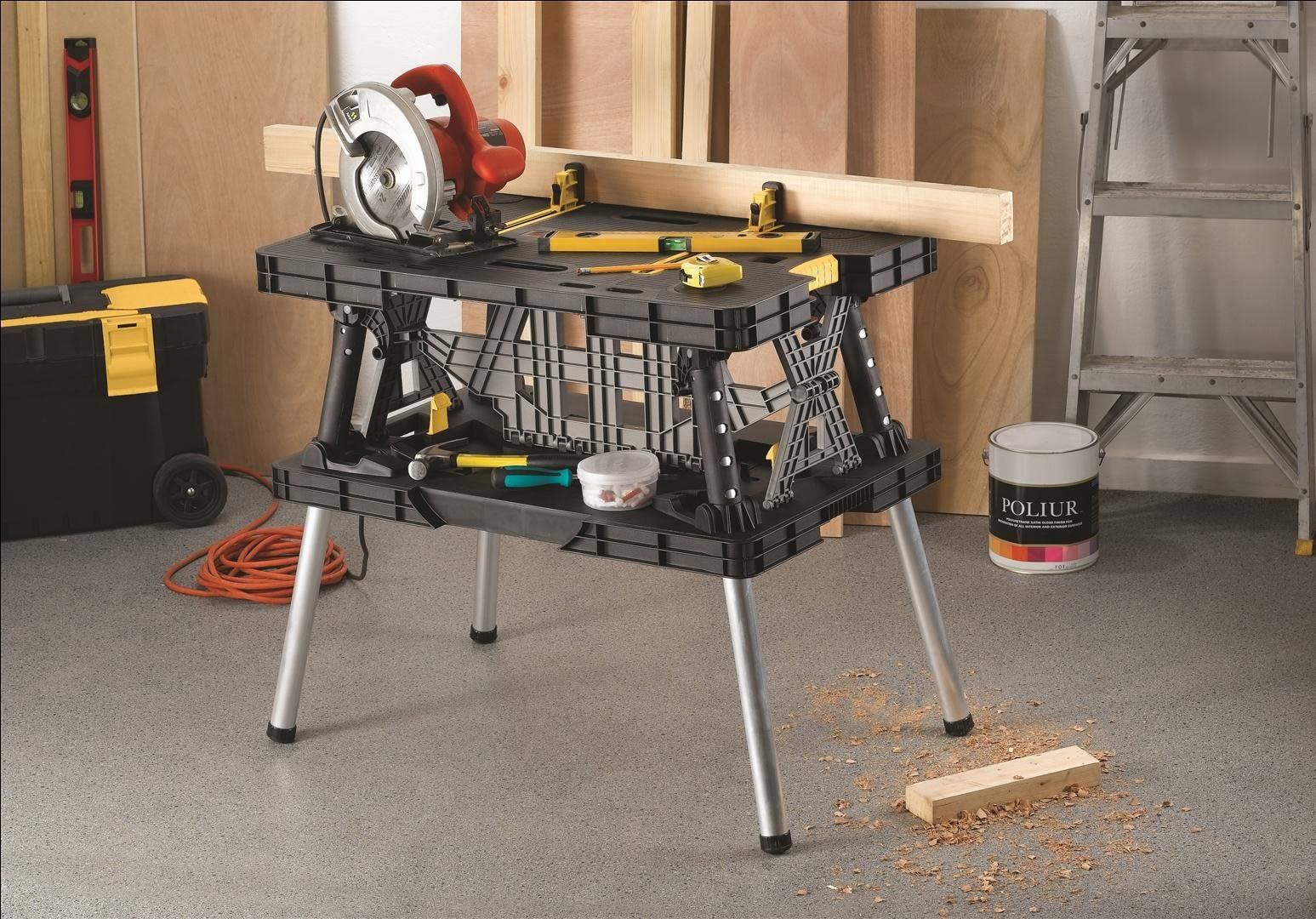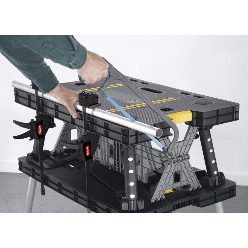 Keter Folding Compact Workbench Sawhorse Work Table with Clamps 1000 lb Capacity